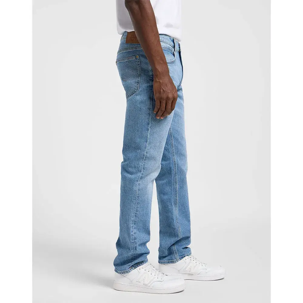 Эта пара выполнена в светло-голубом цвете с потертостями, что придает им нежный поношенный вид, и имеет обычный дизайн, дополненный фирменной деталью Lee, включая нашивку, пуговицы с логотипом и ленивую S.