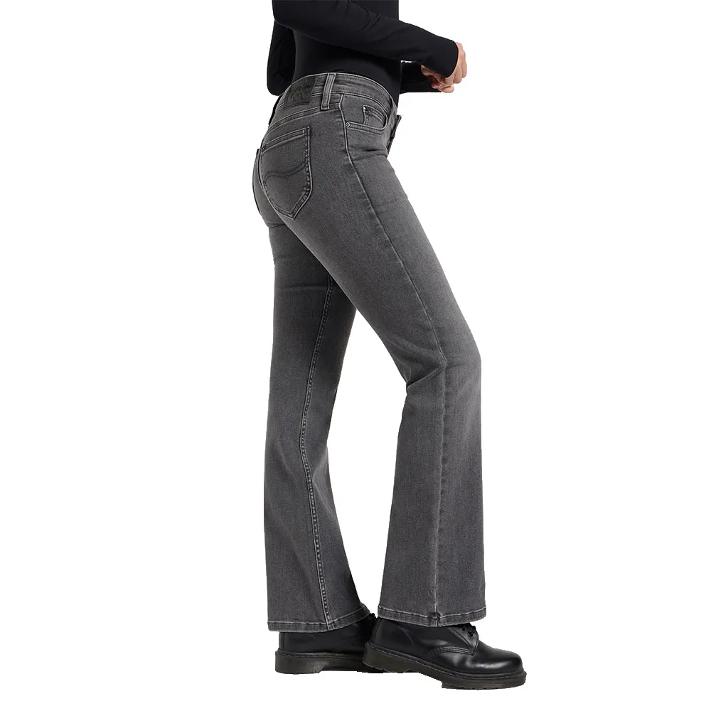 Классическая модель с пятью карманами, S-образными задними карманами, нашивкой Lee сзади и пуговицами с логотипом.