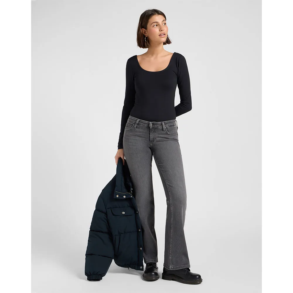 Классический фасон с пятью карманами, S-образными задними карманами, нашивкой Lee сзади и пуговицами с логотипом.