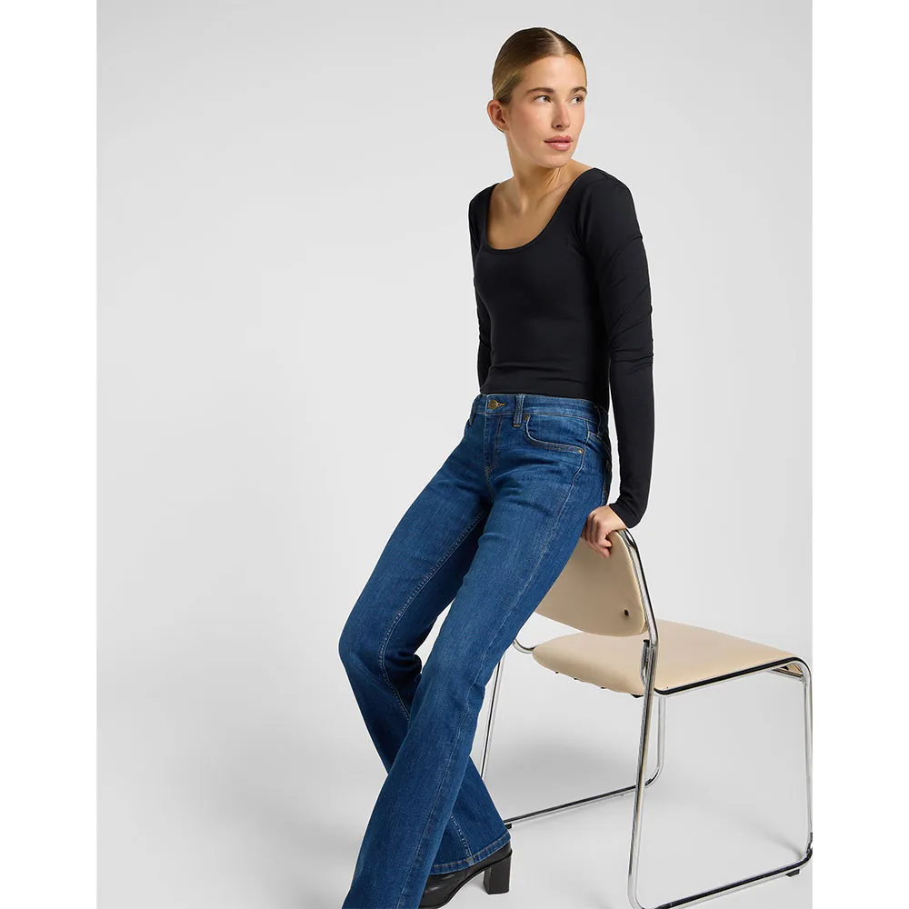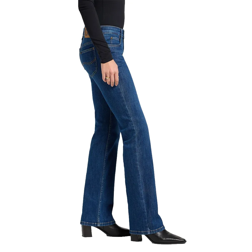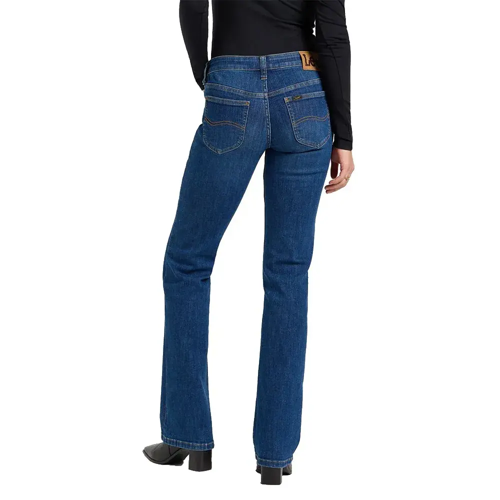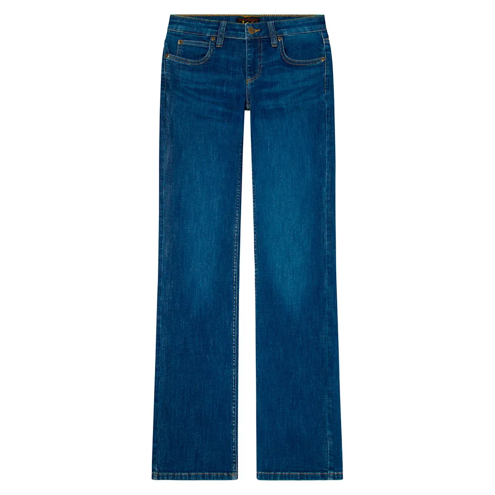 Классическая модель с пятью карманами, S-образными задними карманами, нашивкой Lee сзади и пуговицами с логотипом.