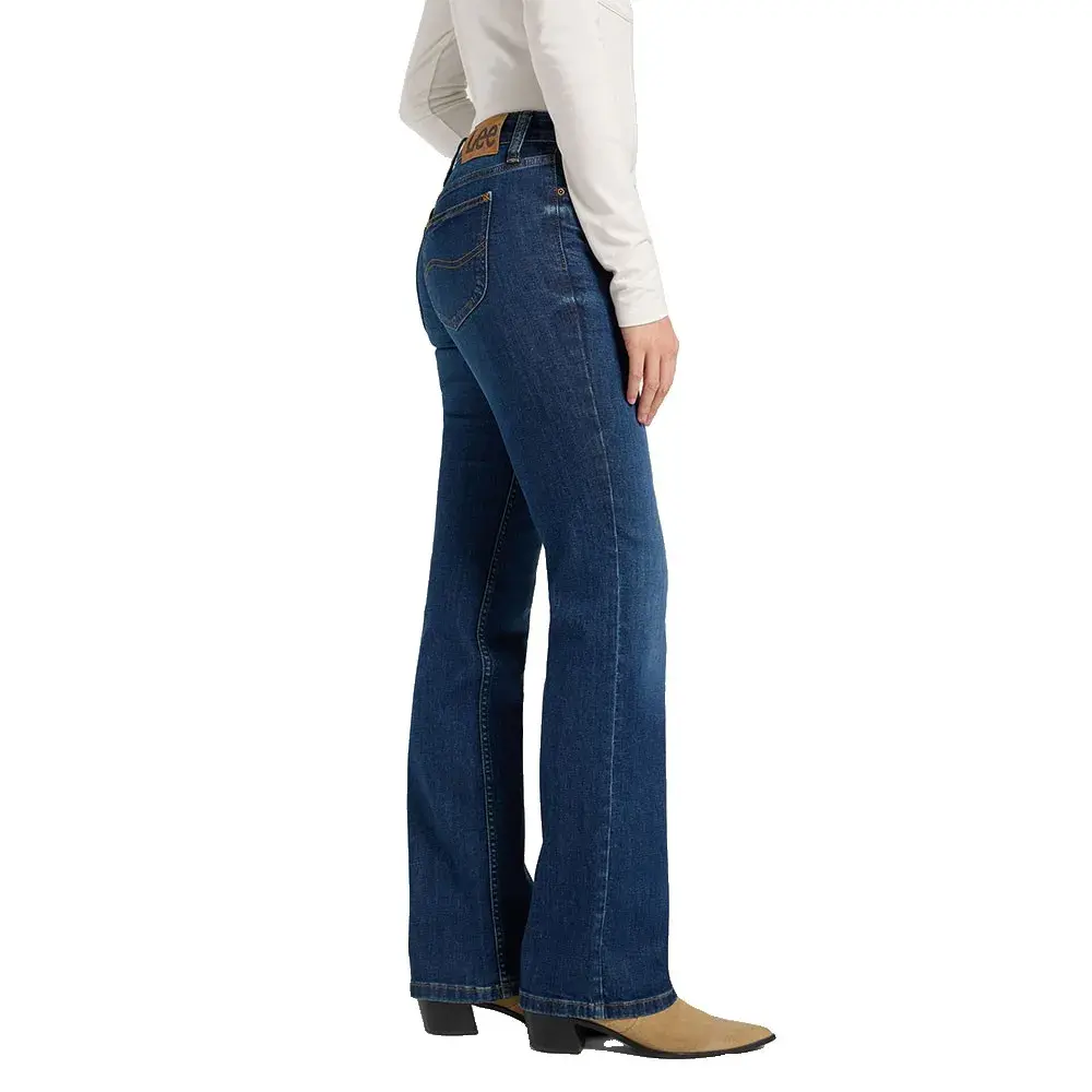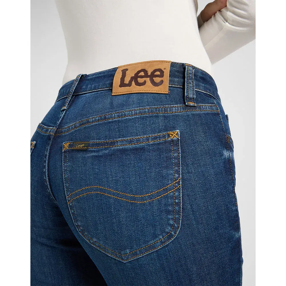 Классический фасон с пятью карманами, S-образными задними карманами, нашивкой Lee сзади и пуговицами с логотипом.