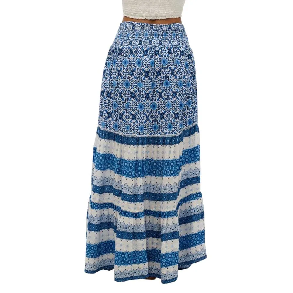 Наша юбка макси с принтом, пропитанная праздничным настроением, выполнена из многоярусных тканей, отделанных замысловатым кружевом, и имеет удобную эластичную талию. Она невероятно стильная и идеально подходит для отпуска или жарких летних дней.