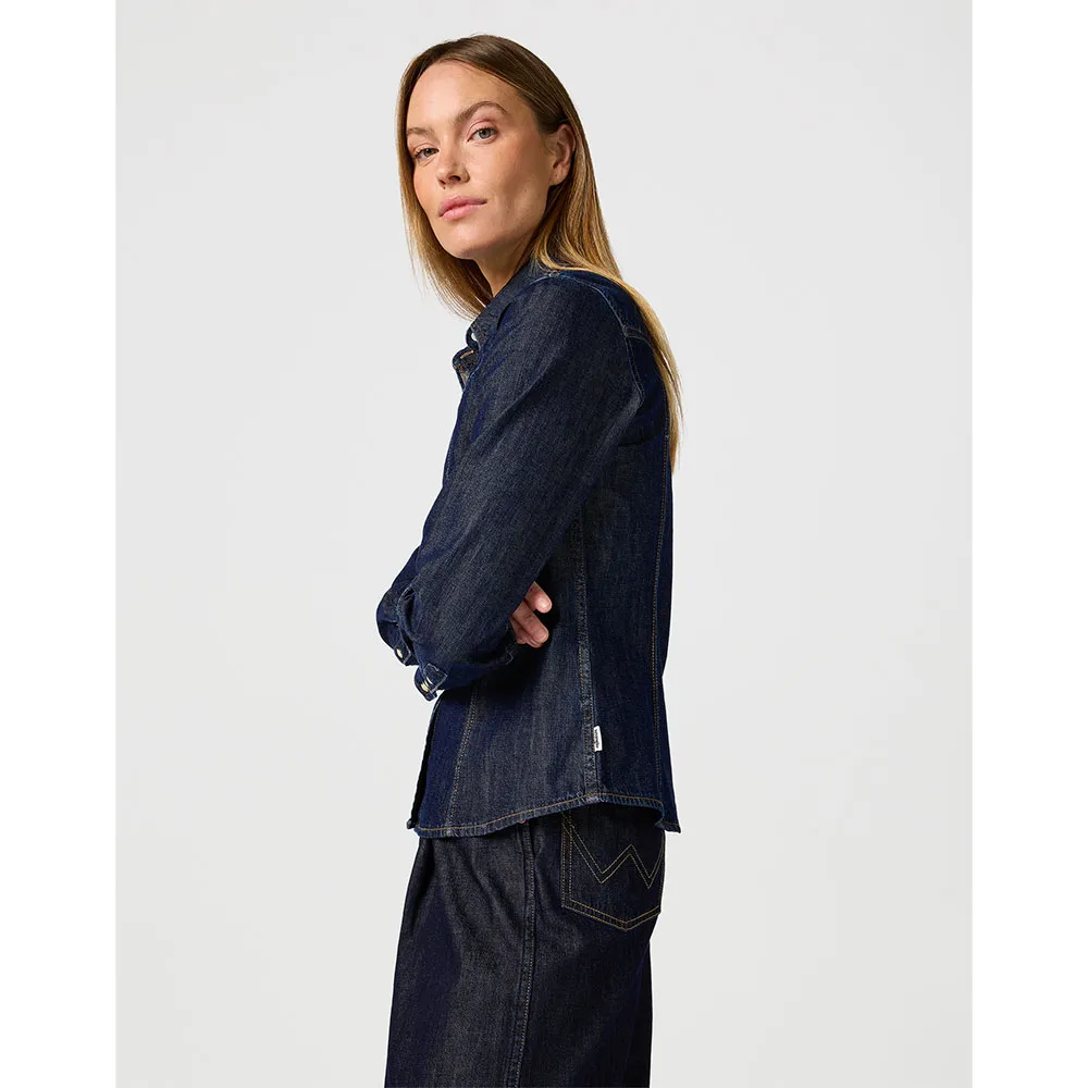 Эта джинсовая рубашка с длинным рукавом, разработанная так, чтобы облегать и подчеркивать фигуру во всех нужных местах, является проверенной и надежной базовой вещью благодаря облегающему крою и удобной хлопковой ткани.