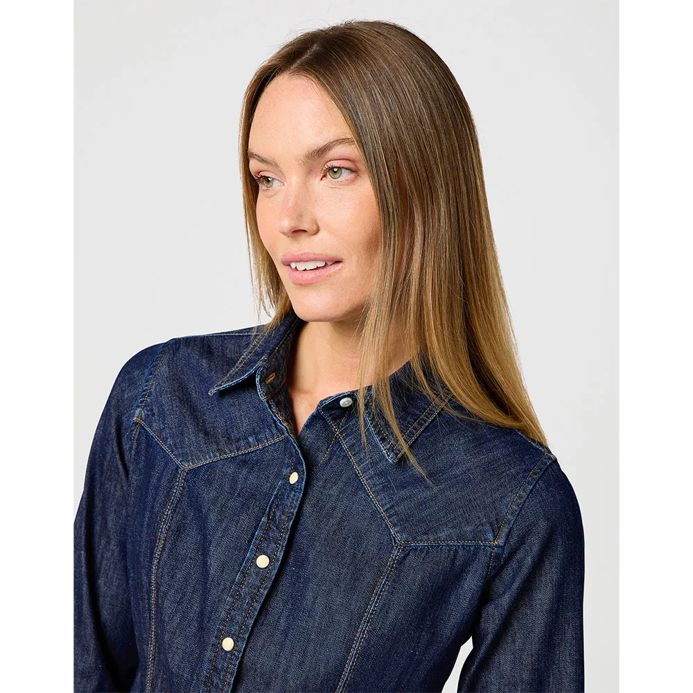 Эта джинсовая рубашка с длинным рукавом, вдохновленная деталями в стиле вестерн, готова к работе, выходным и всему, что между ними.