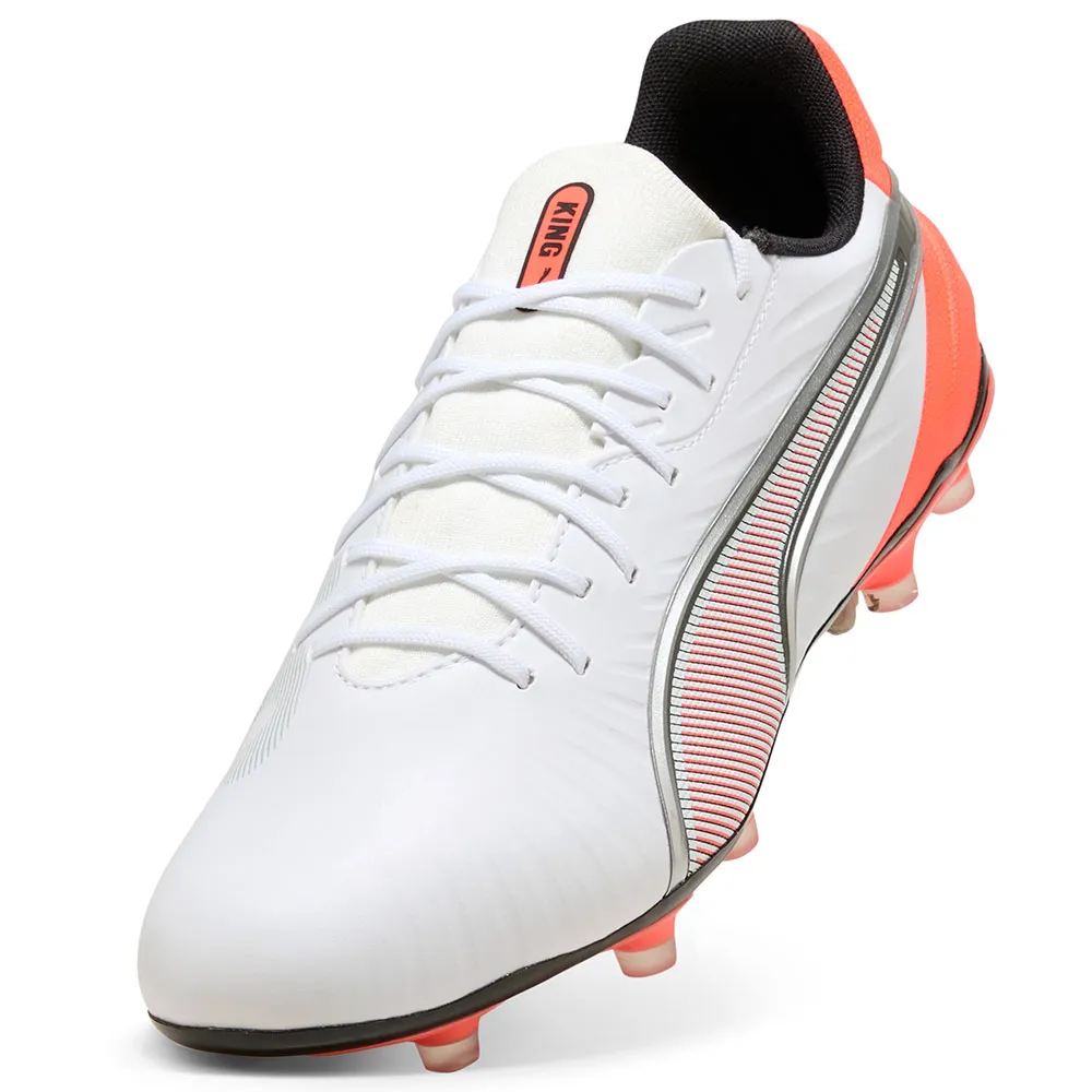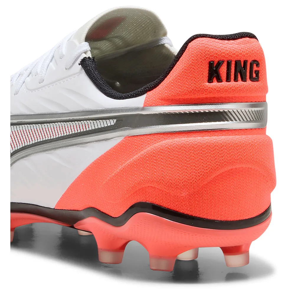 Модель KING отличается мягким синтетическим верхом для превосходного контроля мяча и легкой подошвой из термополиуретана с коническими шипами для маневренной игры, а низкая конструкция обеспечивает надежную посадку для игры на твердом грунте.
