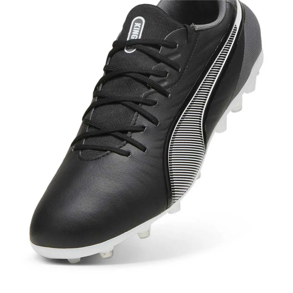 Превосходное касание. Максимальный комфорт. Звучит как KING. Эти футбольные бутсы сочетают в себе мягкий верх из синтетической кожи, низкопрофильную конструкцию с застежкой-липучкой и лёгкую подошву из термополиуретана для игрового поля, достойную KING.