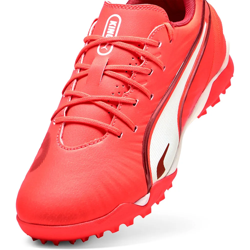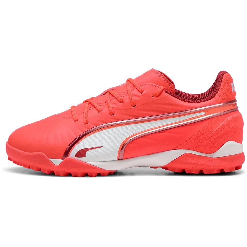 Эти футбольные бутсы сочетают в себе мягкий верх из синтетической кожи с классической конструкцией язычка и низкопрофильную резиновую подошву с многочисленными шипами и промежуточную подошву из ЭВА для производительности на поле, достойной KING.