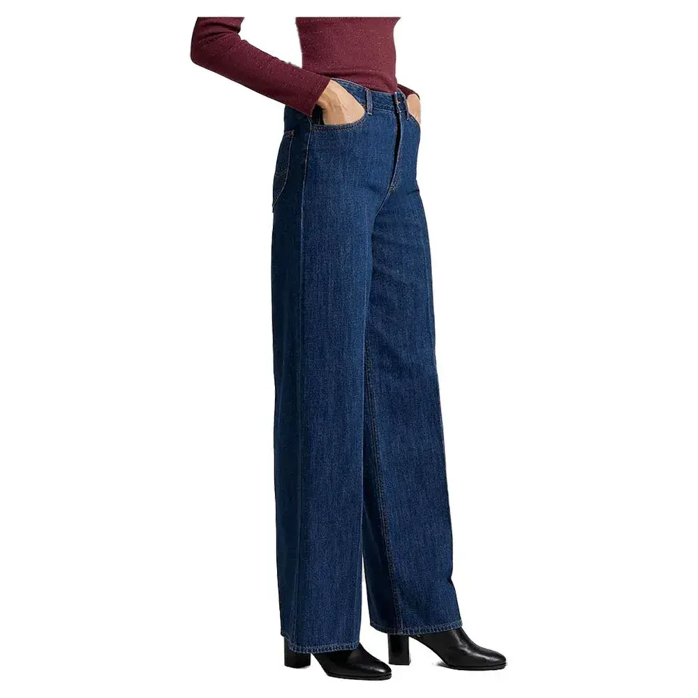 Джинсы в моде уже не первый год. Наш самый широкий клеш сидит высоко на талии — идеально, чтобы заправить футболку — и имеет идеальные штанины палаццо, создавая эффектный А-силуэт.