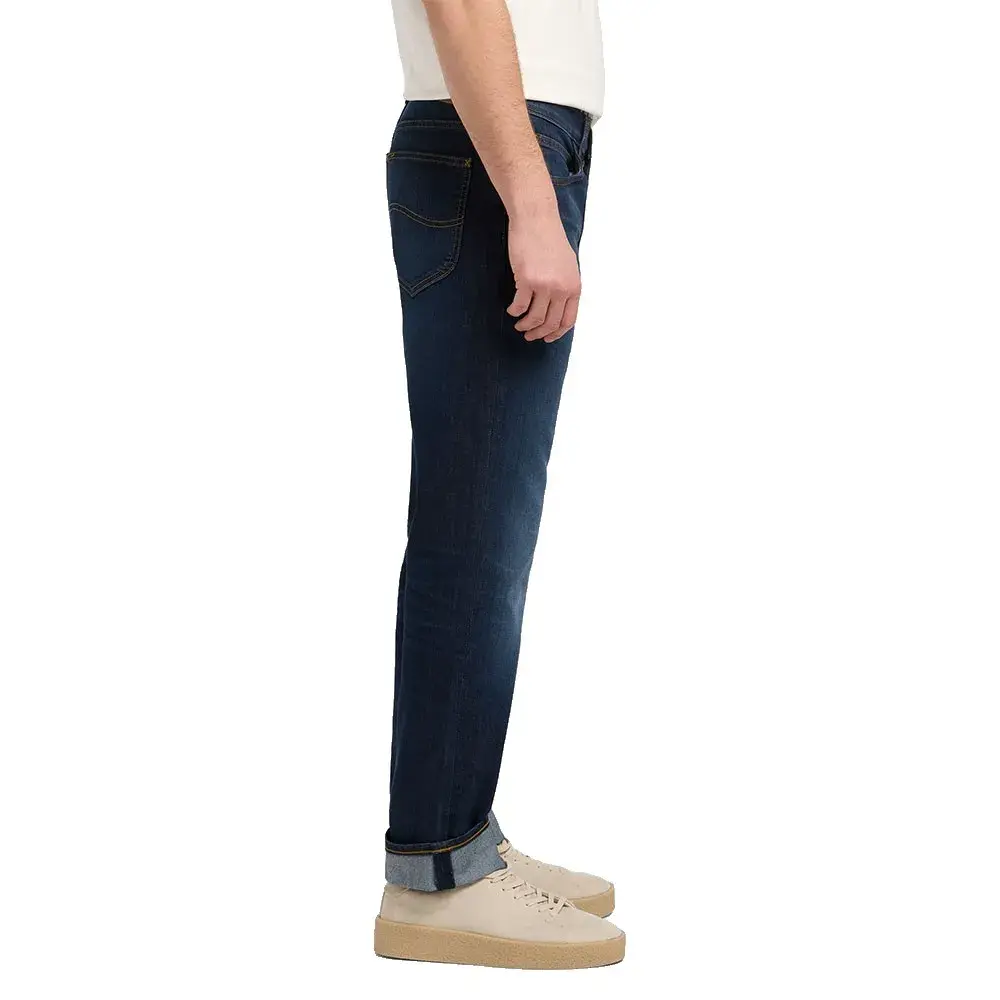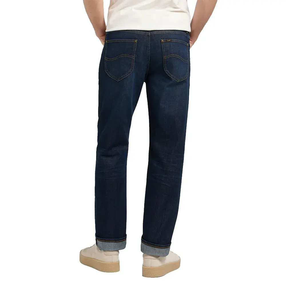 Классический пятикарманный фасон с S-образной строчкой на задних карманах, крестообразными строчками и нашивкой с логотипом.