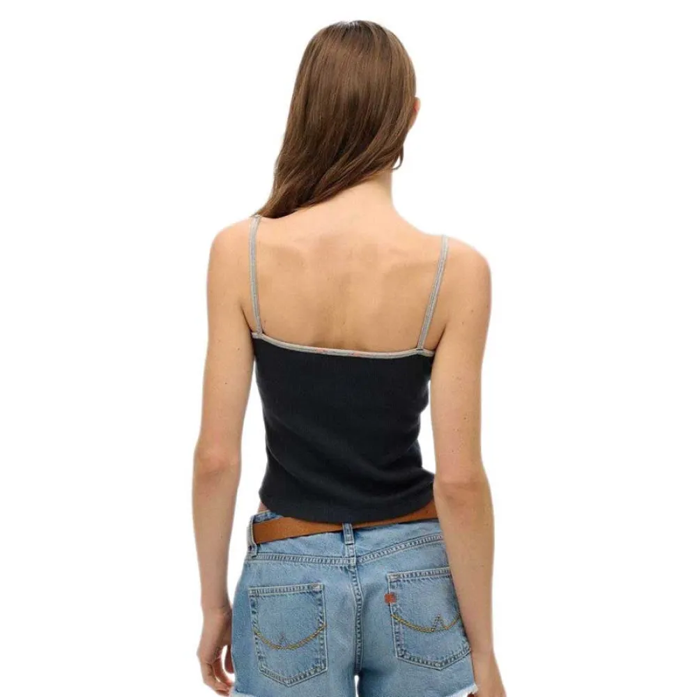 Квадратный вырез на тонких бретельках.