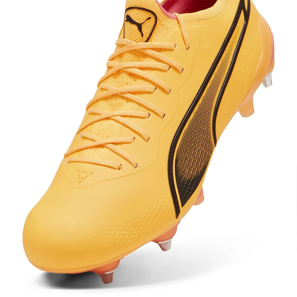 Контроль никогда не был таким удобным. Легенда, охватывающая поколения, KING возвращается с смелыми обновлениями дизайна и инновационными материалами, которые работают лучше — как для игрока, так и для планеты. Как и совершенно новый материал верха K-BETTER, который улучшает фирменное касание, комфорт и устойчивость к растяжению. Новая легкая подошва с внешним задником, интегрированным стабилизирующим шипом и коническими шипами, чтобы вы могли контролировать свои движения так же хорошо, как и мяч.