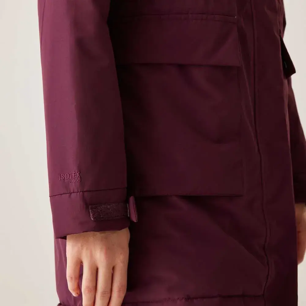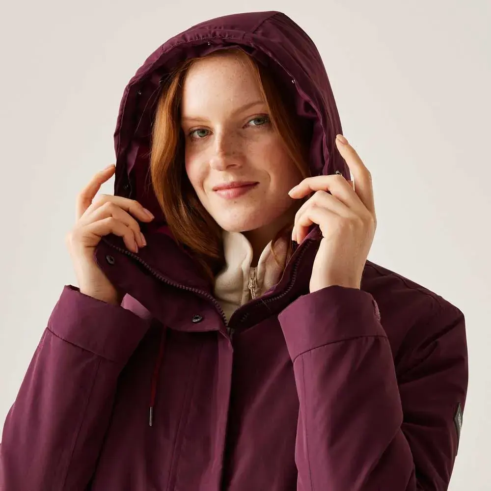 - Приталенный капюшон с регулятором и съемной отделкой из искусственного меха.