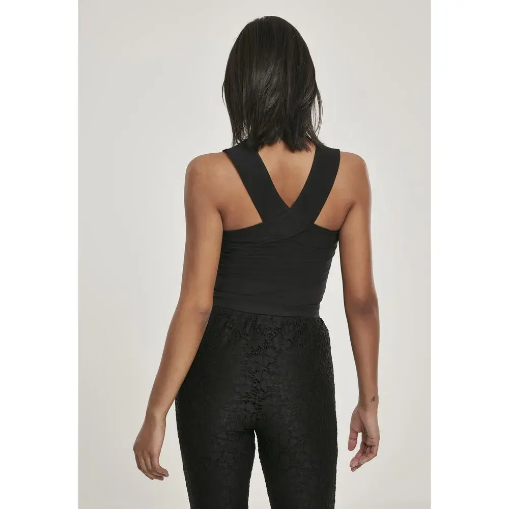 Этот современный двубортный топ — настоящая находка этим летом. Он очень облегающий, чуть выше пупка. Широкие бретели, перекрещивающиеся перед ключицами и между лопатками, — изюминка модели. Настоящий хит для жарких летних дней! Oberstoff 1: 95% баумволле, 5% эластан, трикотаж-стрейч, плотность 180 г/м².