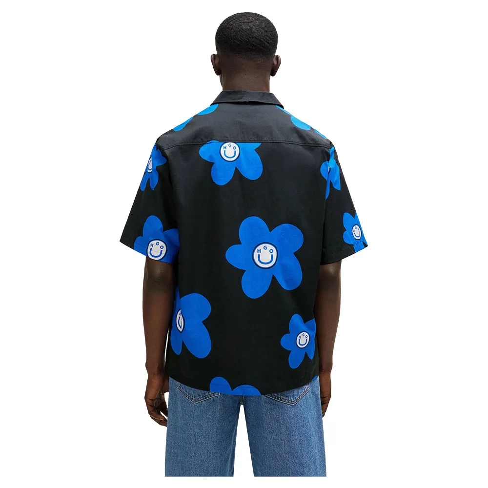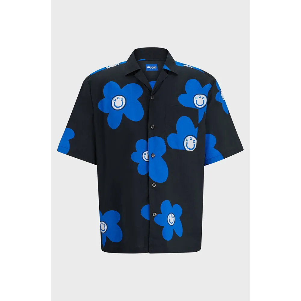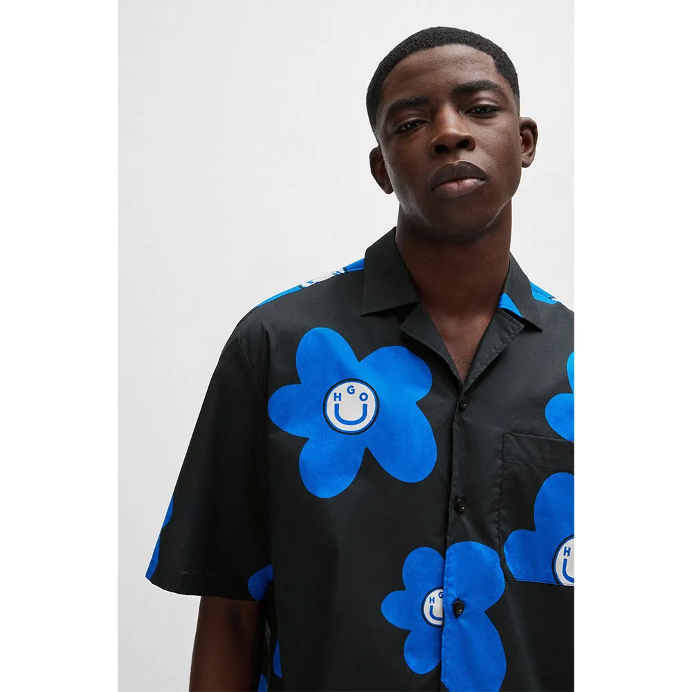 Повседневная рубашка с короткими рукавами от HUGO Menswear, свободного кроя из хлопкового поплина с фирменным цветочным мотивом по всей поверхности.