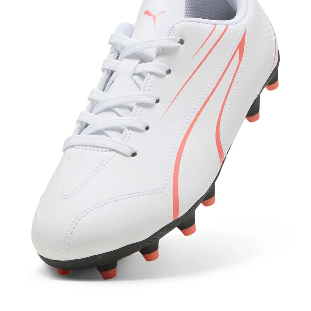 Футбольные бутсы Puma Vitoria созданы для игроков, которым нужны простые в уходе бутсы с классическим дизайном, но при этом созданные для современной игры. Они сочетают в себе мягкий верх с усиленной строчкой для идеального контроля мяча и подошву, которая помогает совершать быстрые рывки. Верх из лёгкого синтетического материала со шнуровкой. Облегчённая подошва из термополиуретана с коническими шипами подходит для использования на твёрдых натуральных покрытиях и искусственной траве.