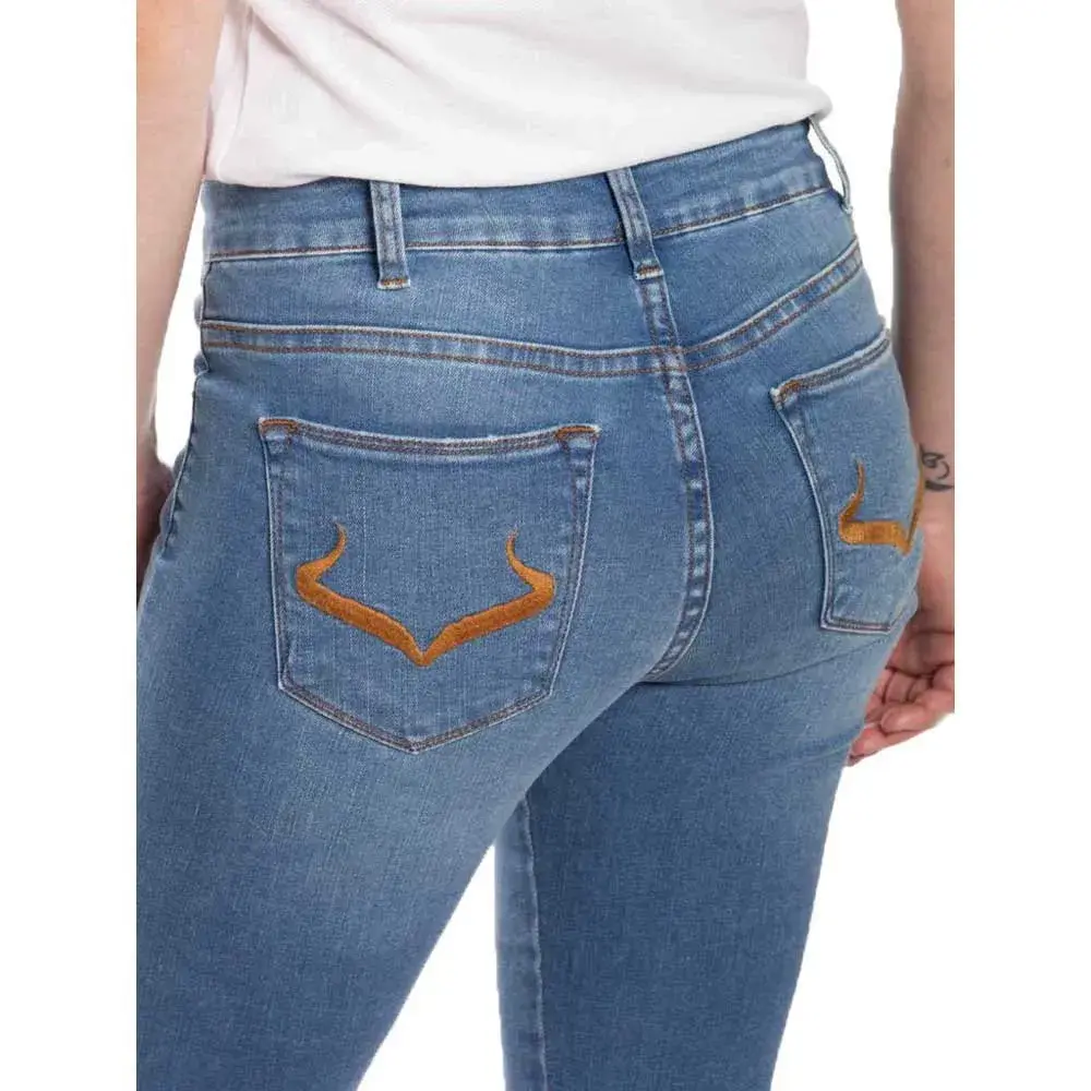 Женские джинсы с пятью карманами, супер-эластичная резинка на бедрах и ягодицах, супер-облегающие штанины, высокая талия, гульфик с металлической молнией.