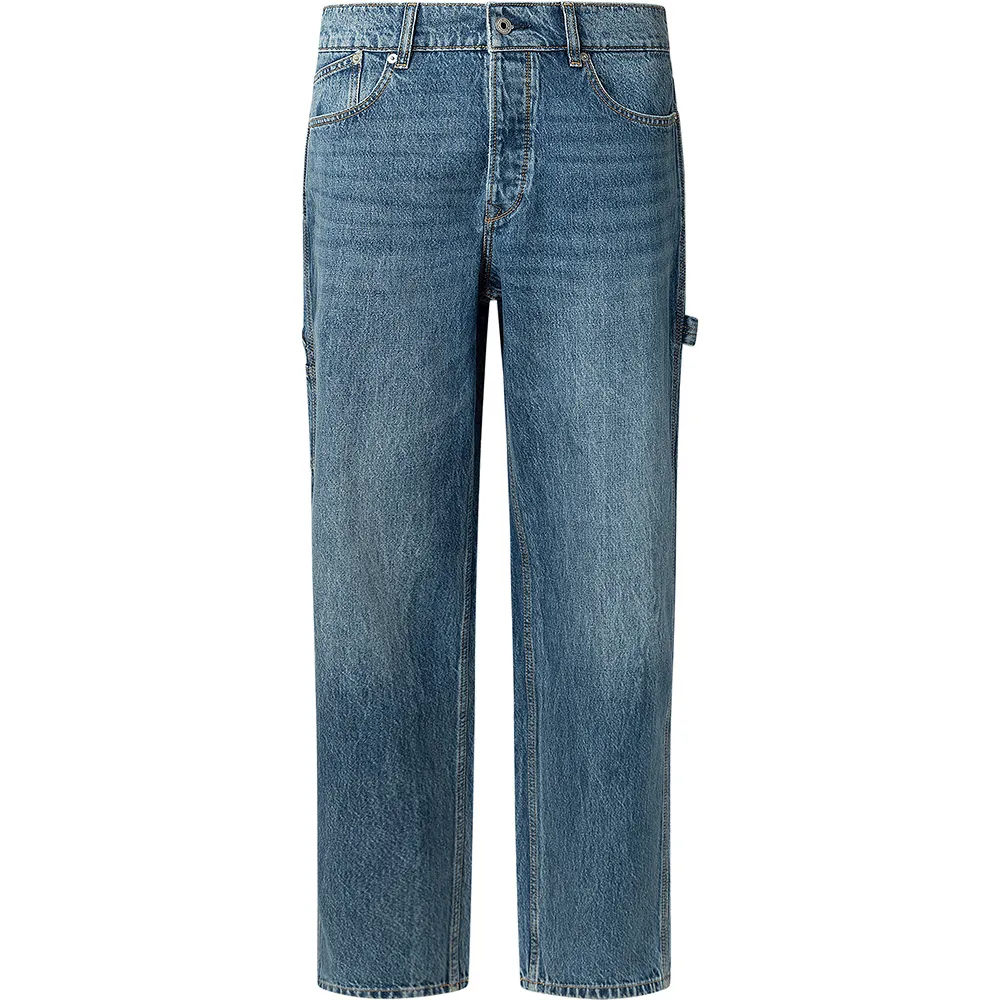 Эти свободные зауженные джинсы в стиле плотницкого стиля средней потертости обеспечивают комфорт и стиль благодаря современной непринужденной посадке.