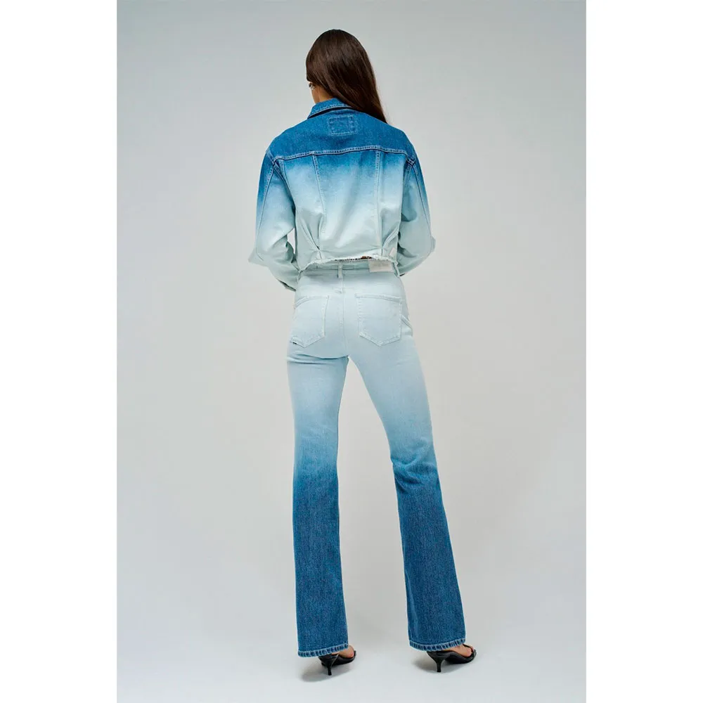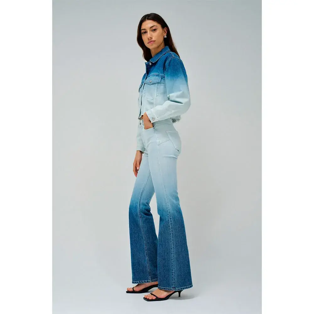 Изготовленная из синего денима в оттенках, которые плавно переходят от самых темных к самым светлым, она привносит новое измерение в деним, добавляя современный, художественный штрих к этому вневременному материалу.