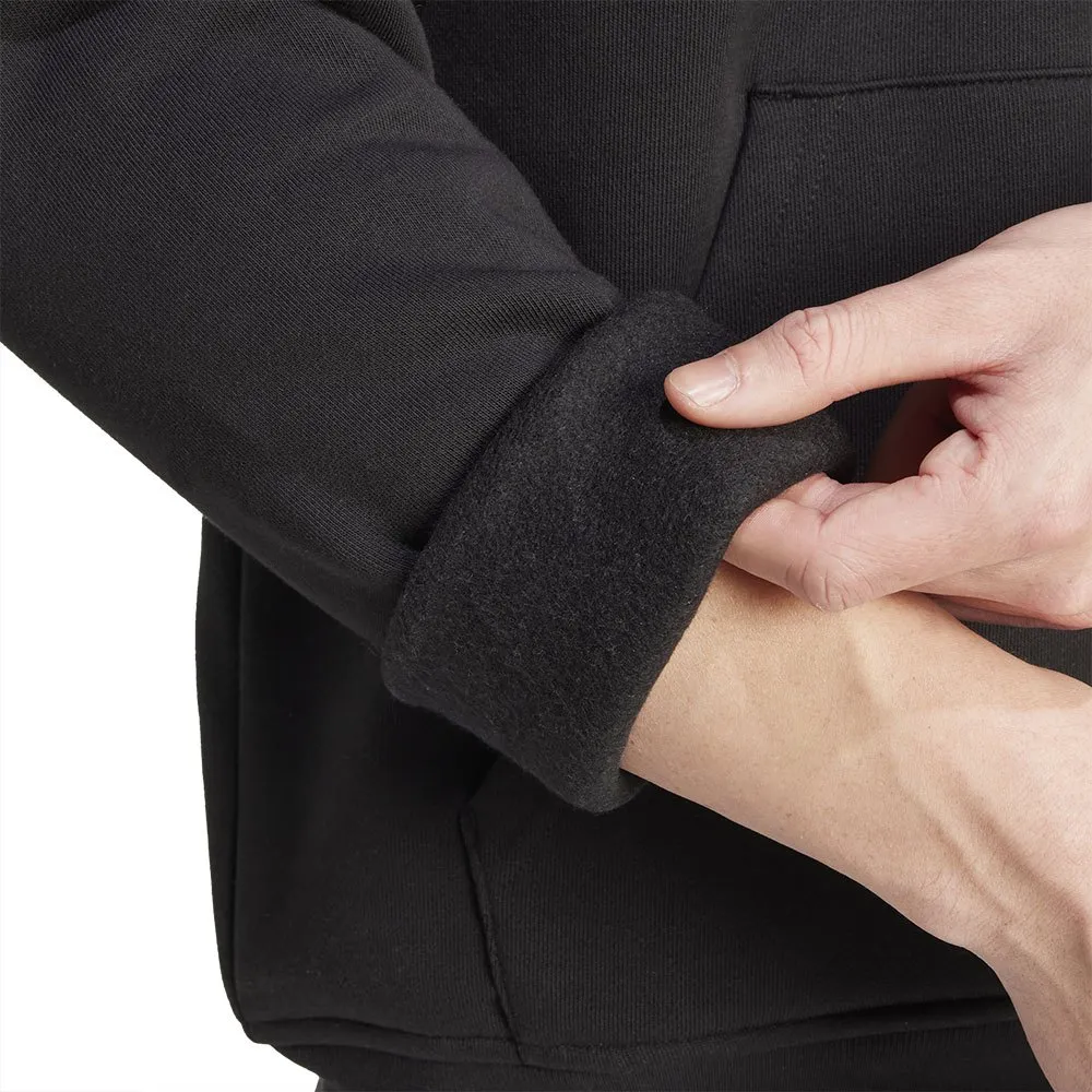 Мягкий флис усиливает уют, а классические детали, такие как ребристые манжеты и вышитый логотип-трилистник, придают образу непринужденный спортивный стиль.