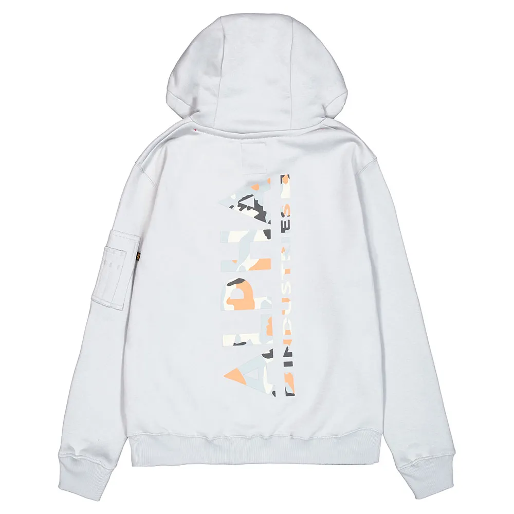 Черпая вдохновение в дизайне военной одежды, эта толстовка с капюшоном выделяется своим ярким камуфляжным принтом Alpha Industries на спине.