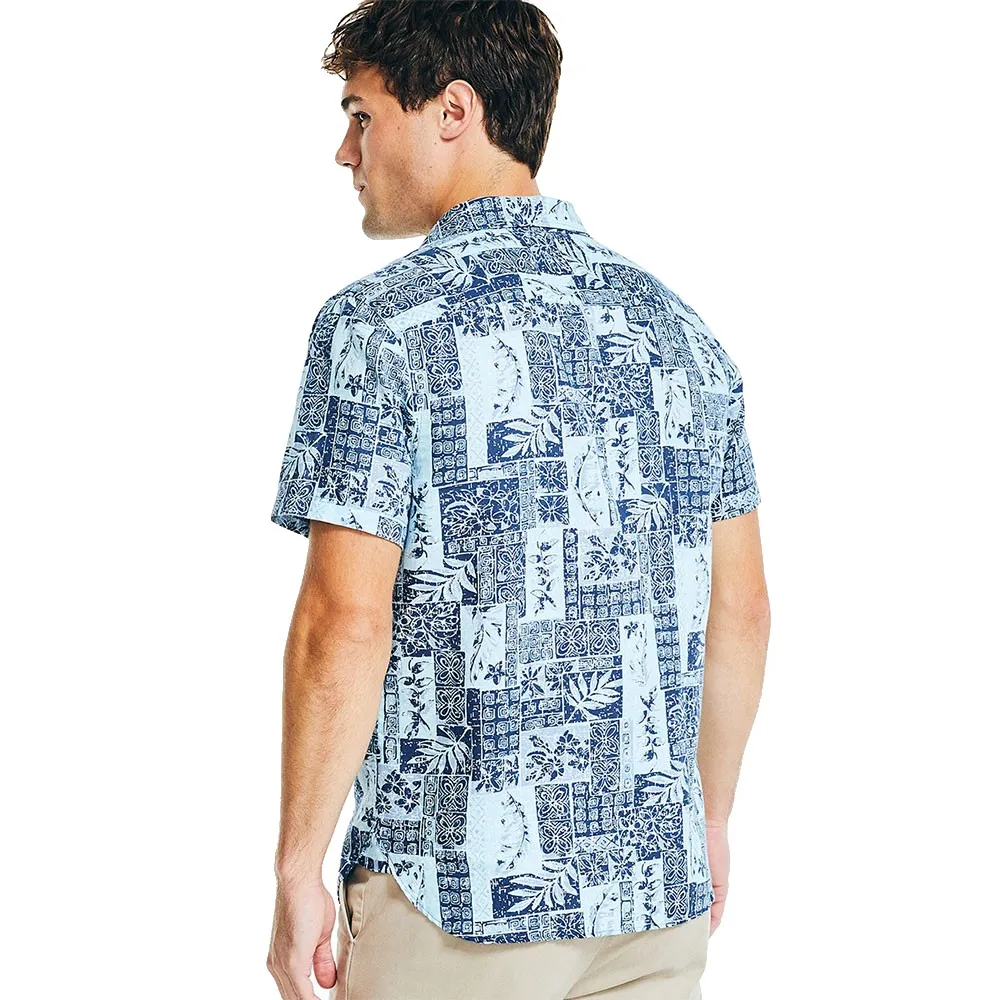 Мужская рубашка от бренда NAUTICA, классический крой, хлопок с фантазийным принтом в синем цвете.