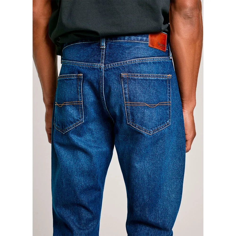 Изготовлены из жесткой ткани, содержащей 20% переработанного хлопка, в глубоком цвете индиго с аутентичным эффектом потертости.