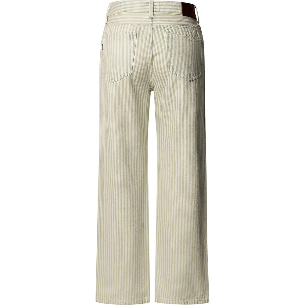 Прямые джинсы с ультравысокой талией, выполненные из джинсовой ткани в полоску мятного и белого цветов.