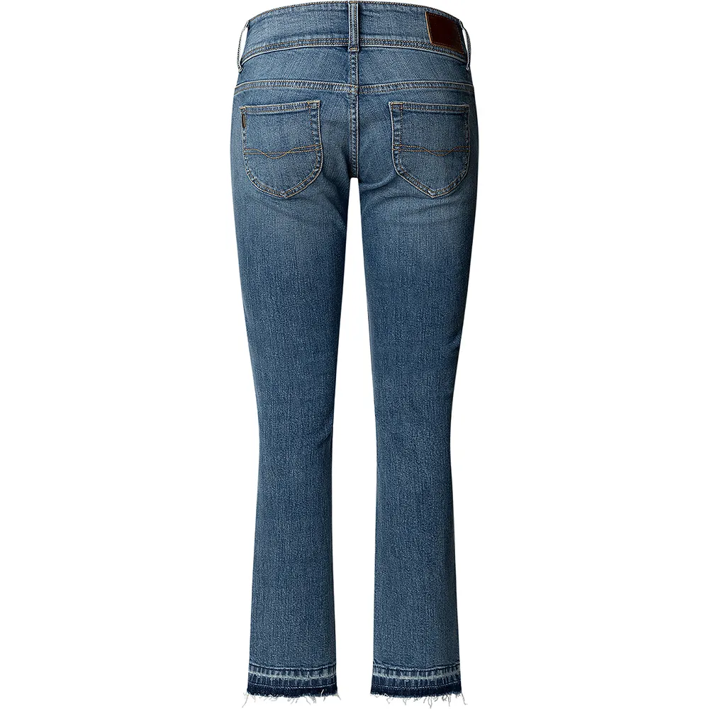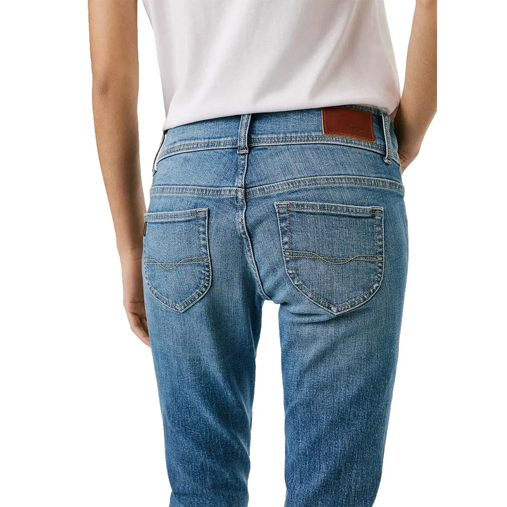 Узкие джинсы с низкой талией, детализированный карман для монет, более широкий пояс с двумя пуговицами и закругленный задний карман для подчеркивания ягодиц.