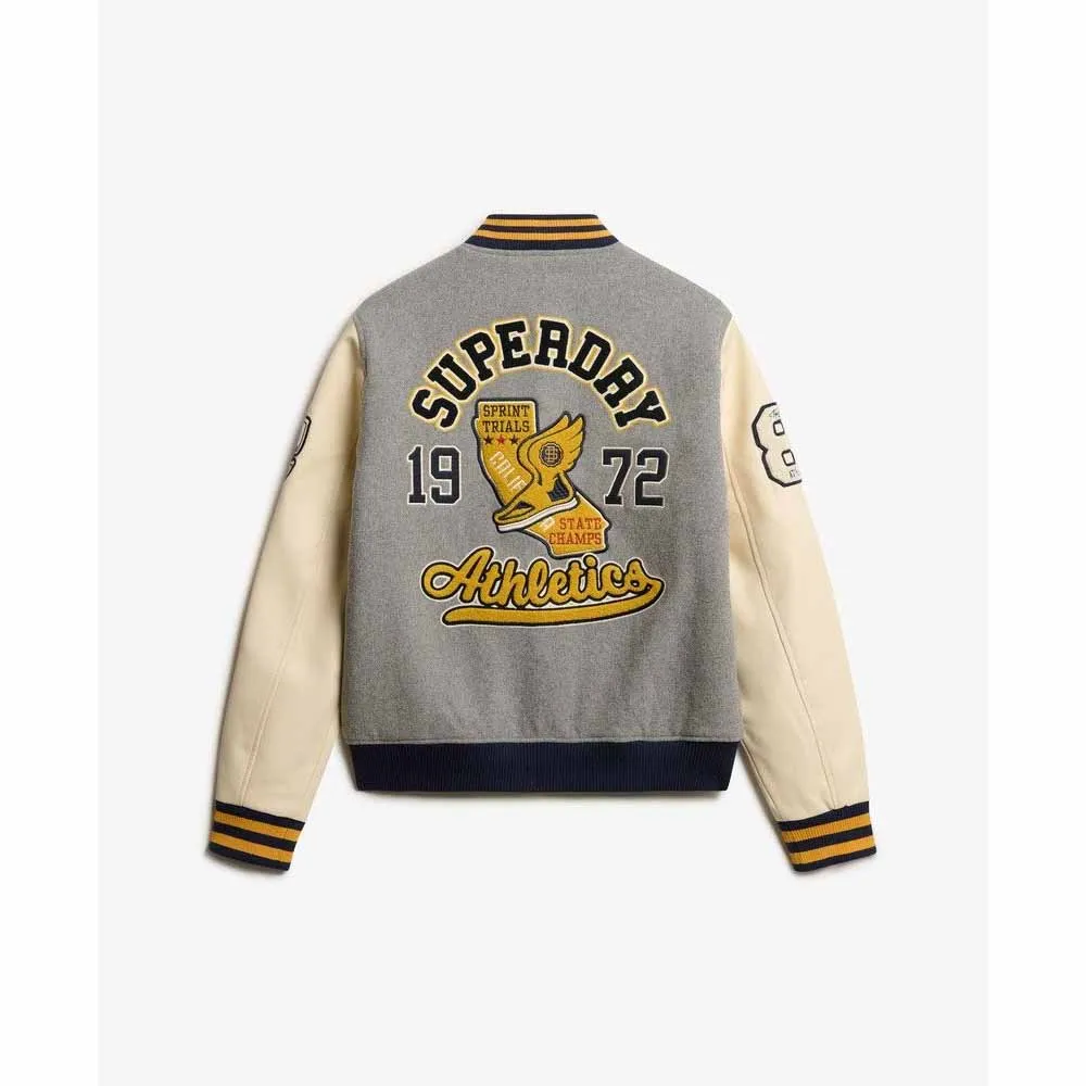 Ощутите очарование американского стиля старой школы с курткой-бомбером College Patched.