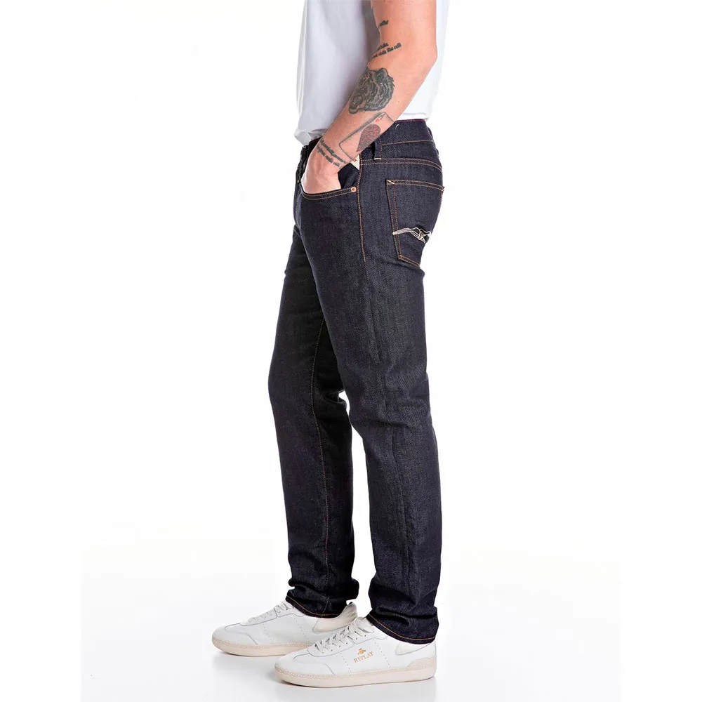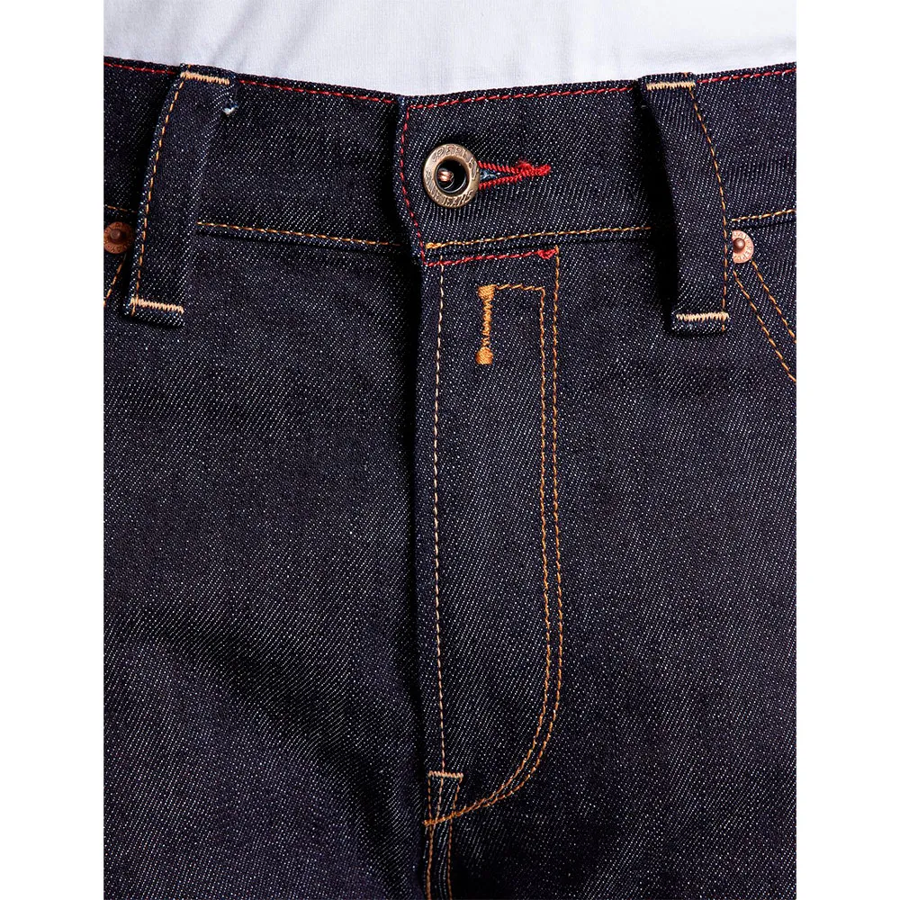 Эластичный деним цвета темно-синего индиго плотностью 5 унций.