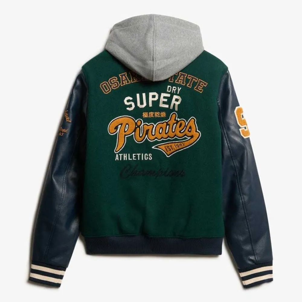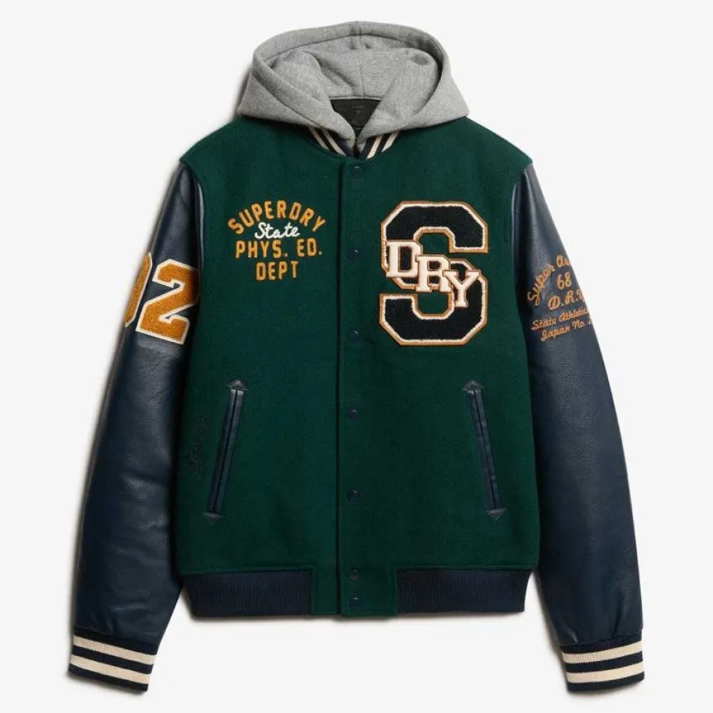 Пробудите в себе студенческую атмосферу с нашей курткой-бомбером с капюшоном и заплатками College Patched.