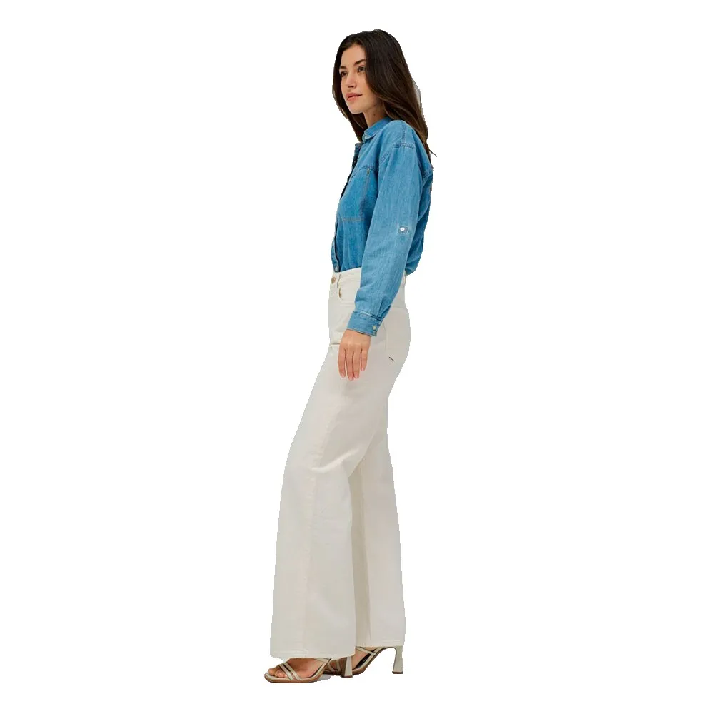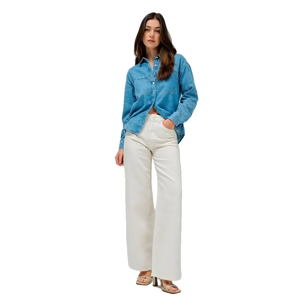 Широкие джинсы с очень высокой талией имеют широкий, прямой и свободный крой по всей длине.