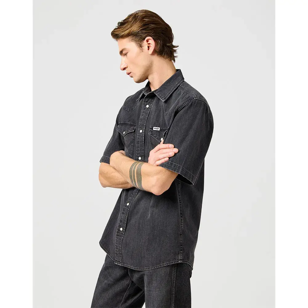 Эта рубашка в стиле вестерн с короткими рукавами из денима, корни которой лежат на американском Западе, имеет классический крой и два нагрудных кармана на кнопках для аутентичного образа.