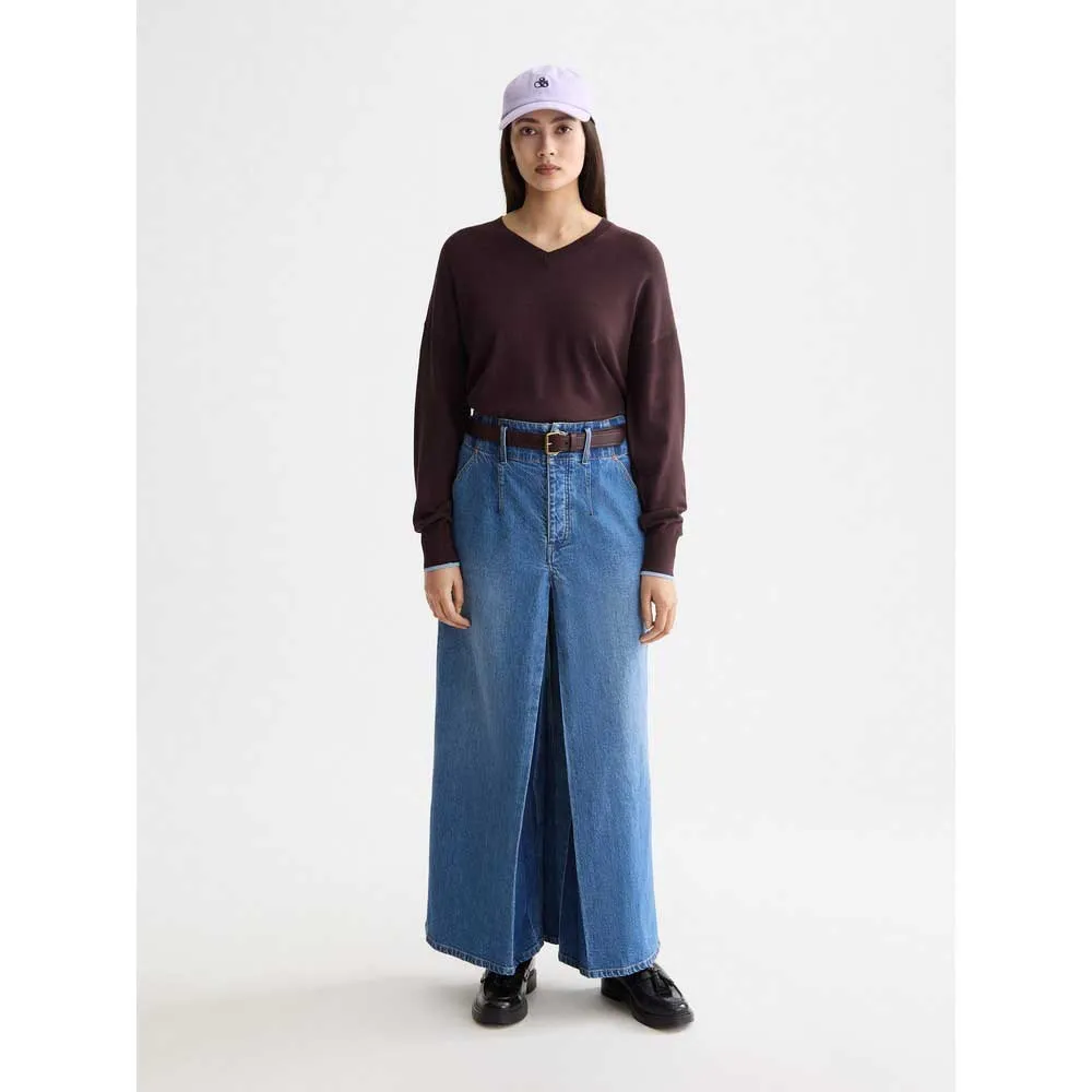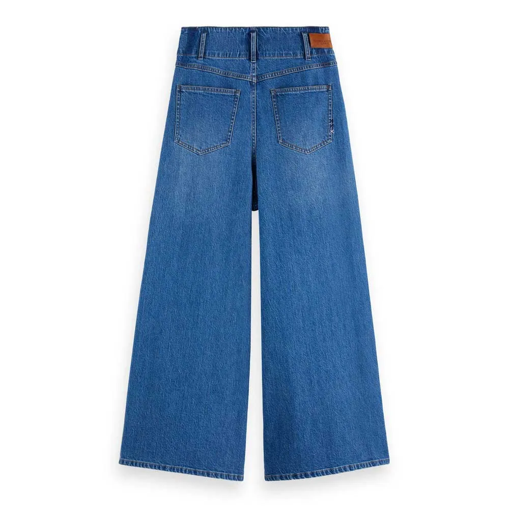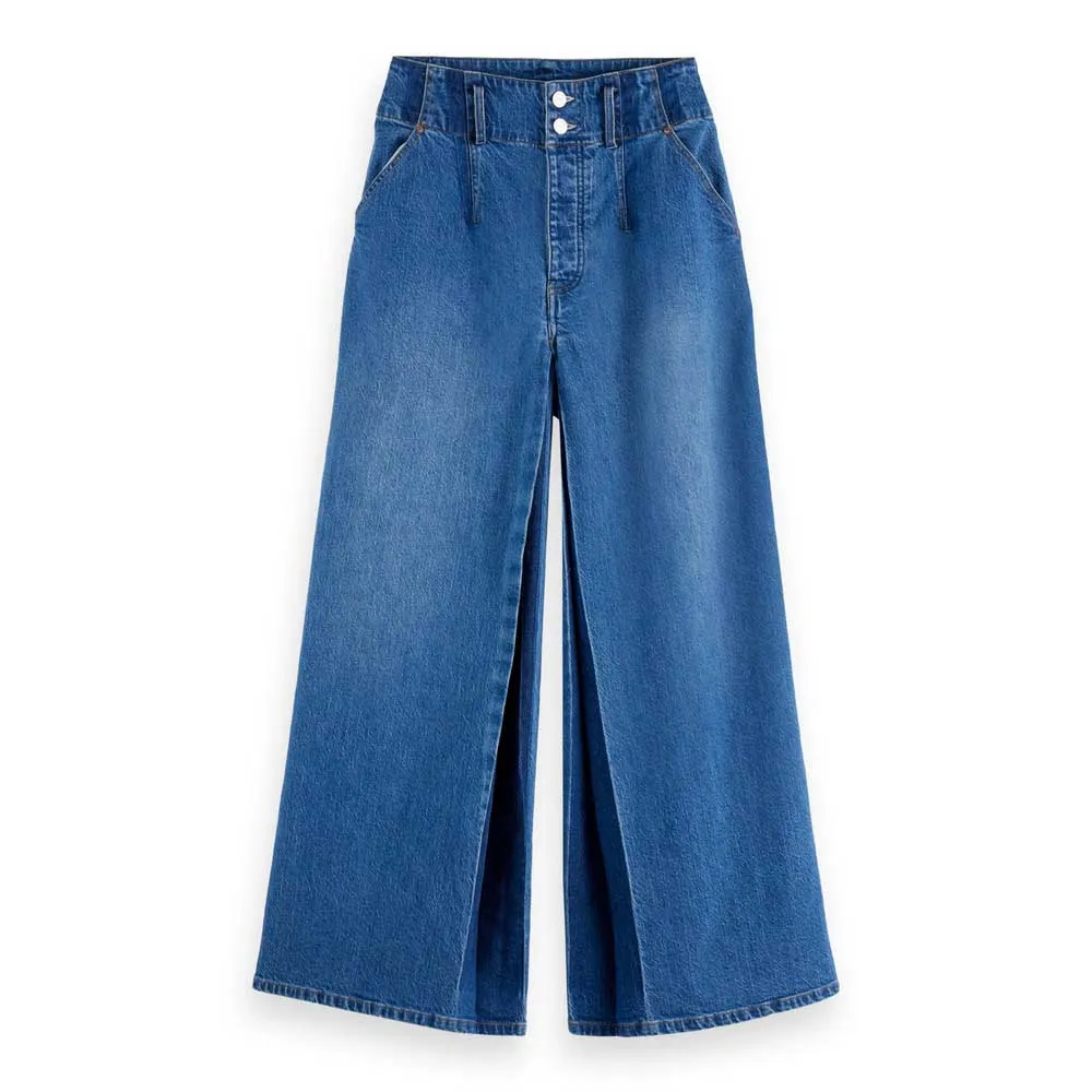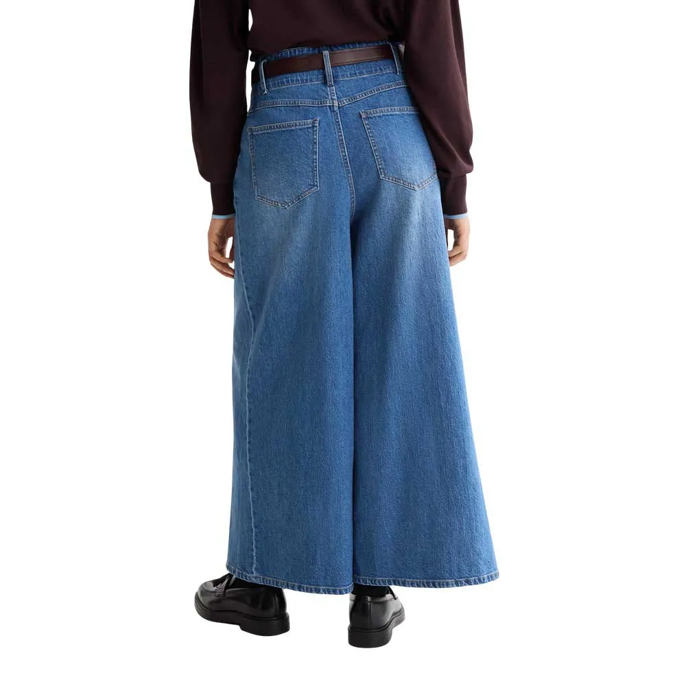 Эти эффектные джинсы с широкими штанинами отличаются высокой посадкой, широким поясом и складками спереди, сочетающими винтажный стиль с современным объемом.