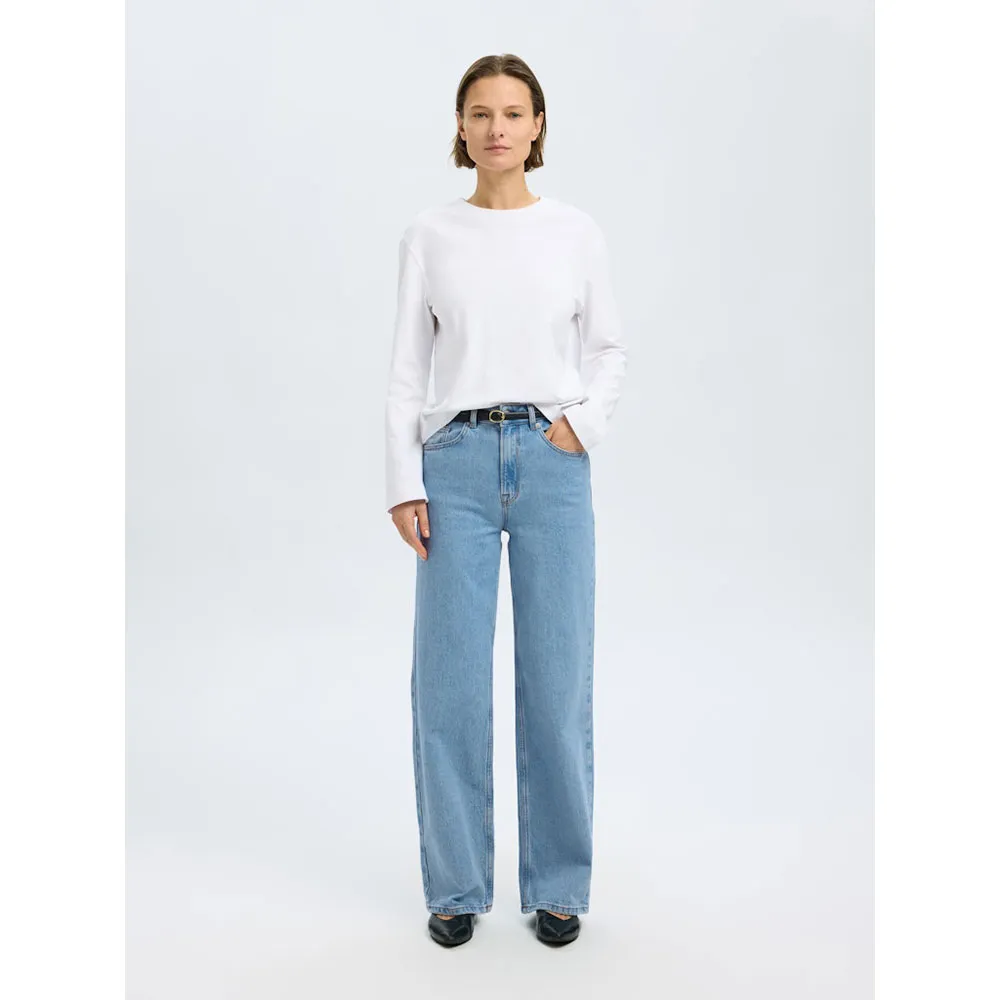 Усовершенствуйте свой повседневный стиль с помощью SELECTED Alice Wide Leg Long Jeans. Эти джинсы сконструированы с подчеркивающей фигуру высокой талией и широким силуэтом, который удлиняет вашу фигуру, создавая шикарный и современный образ.