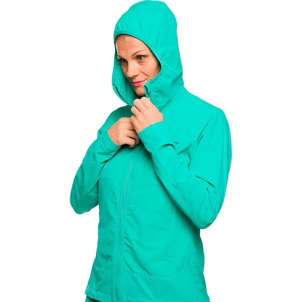 Фиксированный капюшон с эластичной регулировкой - Петля для подвешивания на шее - Рукав реглан - Продольная застежка-молния - Регулируемый подол эластичным шнуром и фиксаторами - Эластичный регулятор большого пальца - Нагрудный карман с невидимой застежкой-молнией - Передние карманы с невидимыми застежками-молниями.