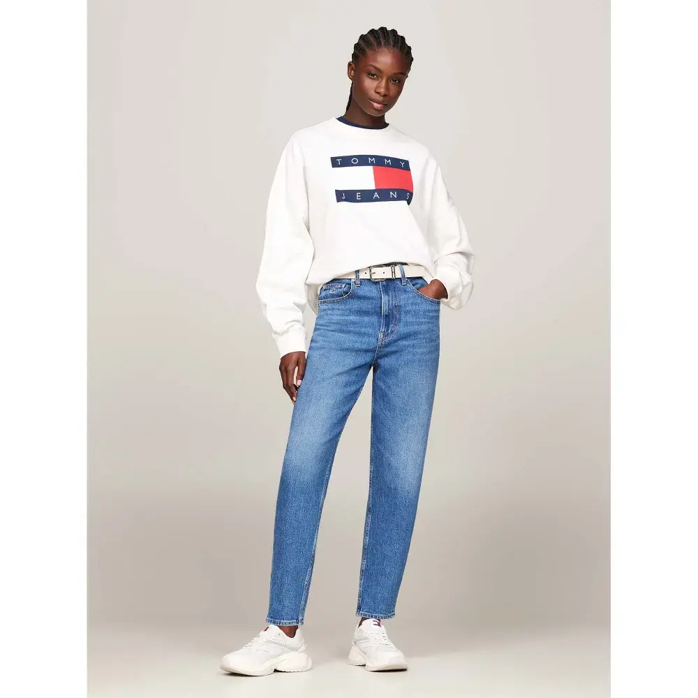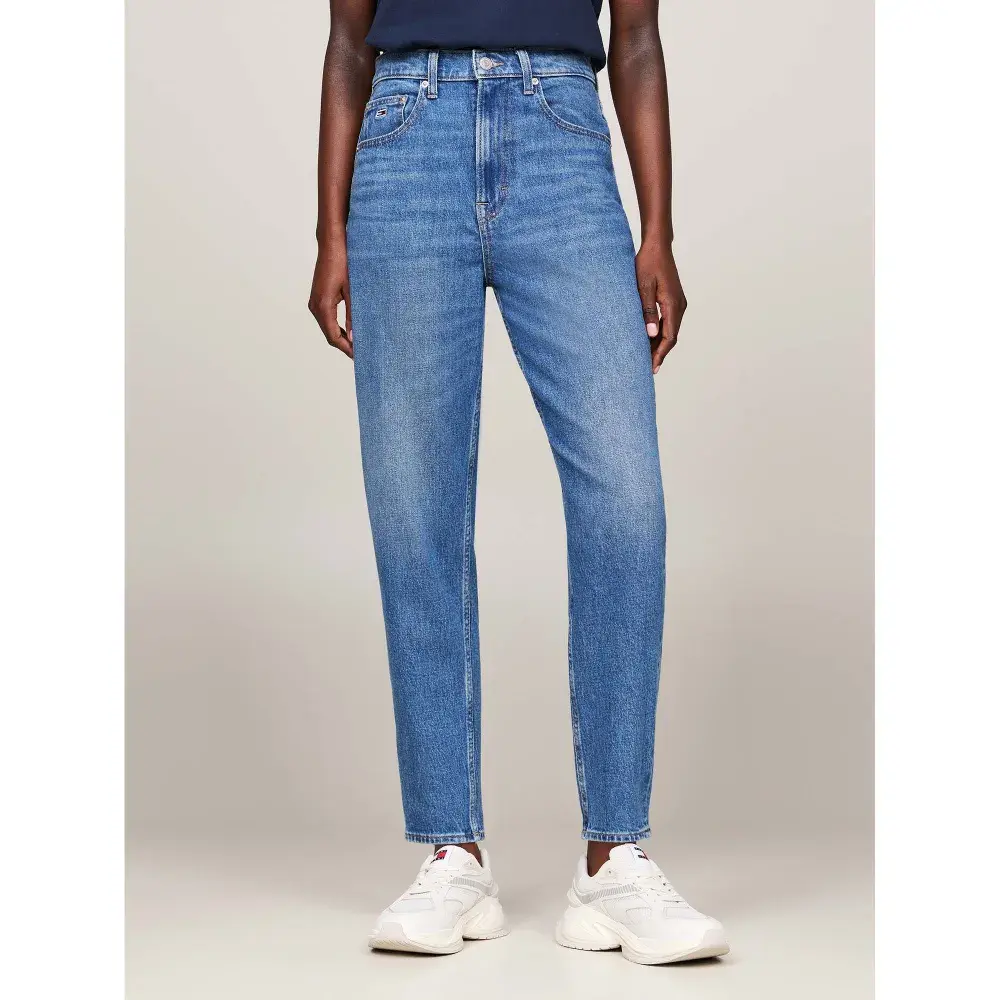 Эти стильные джинсы mom в стиле 80-х с классическими зауженными брючинами и подчеркивающей фигуру сверхвысокой талией.