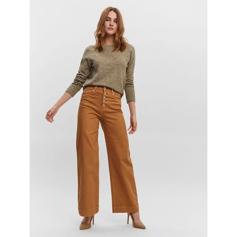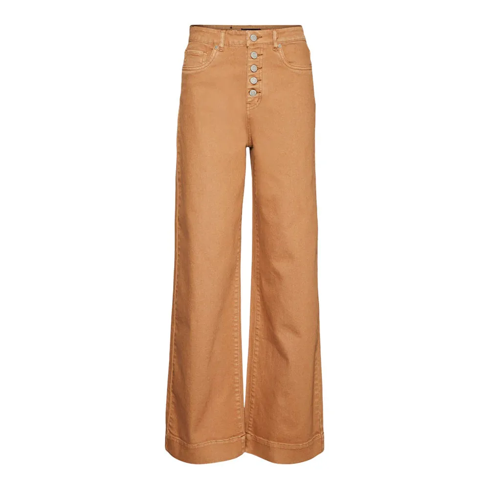 Широкие джинсы с пятью карманами, застежкой на пуговицы и высокой талией.