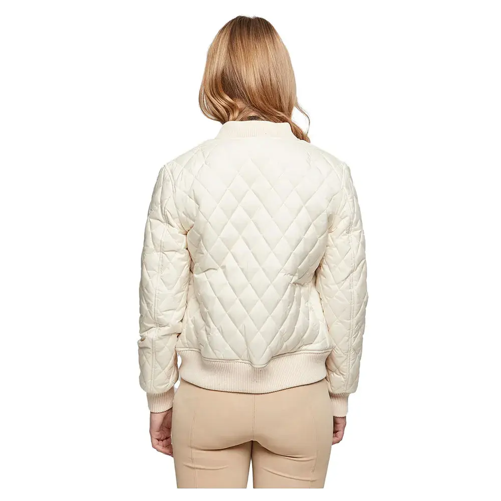 Женская куртка Diamond Quilt Nylon от Urban Classics выделяется ребристым вырезом и разрезами на обоих рукавах и подоле. Подкладка оранжевого цвета, карманы справа и слева спереди.