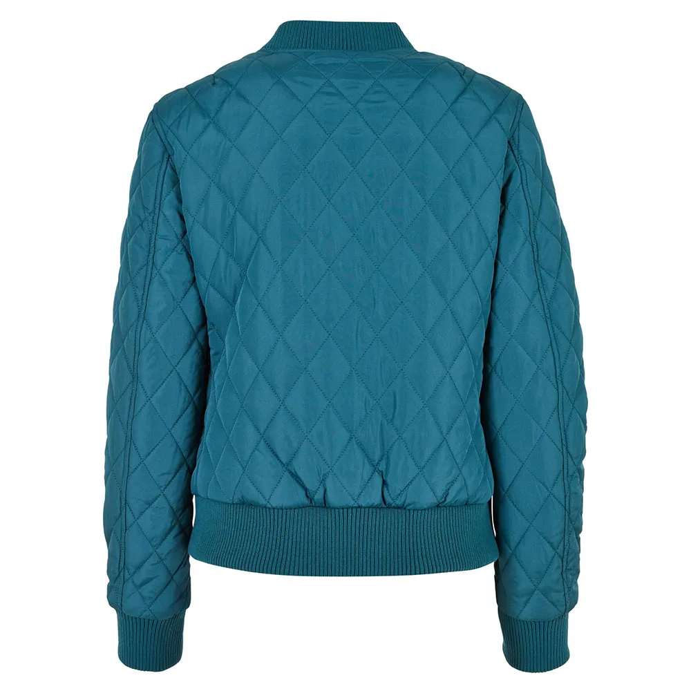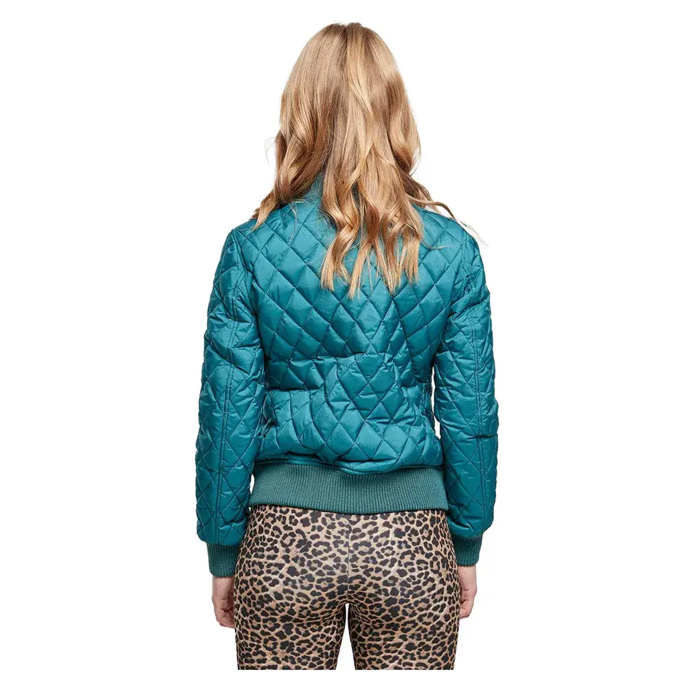 Женская куртка Diamond Quilt Nylon от Urban Classics выделяется ребристым вырезом и разрезами на обоих рукавах и подоле. Подкладка оранжевого цвета, карманы справа и слева спереди.