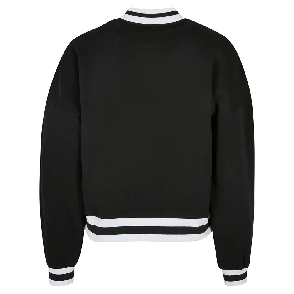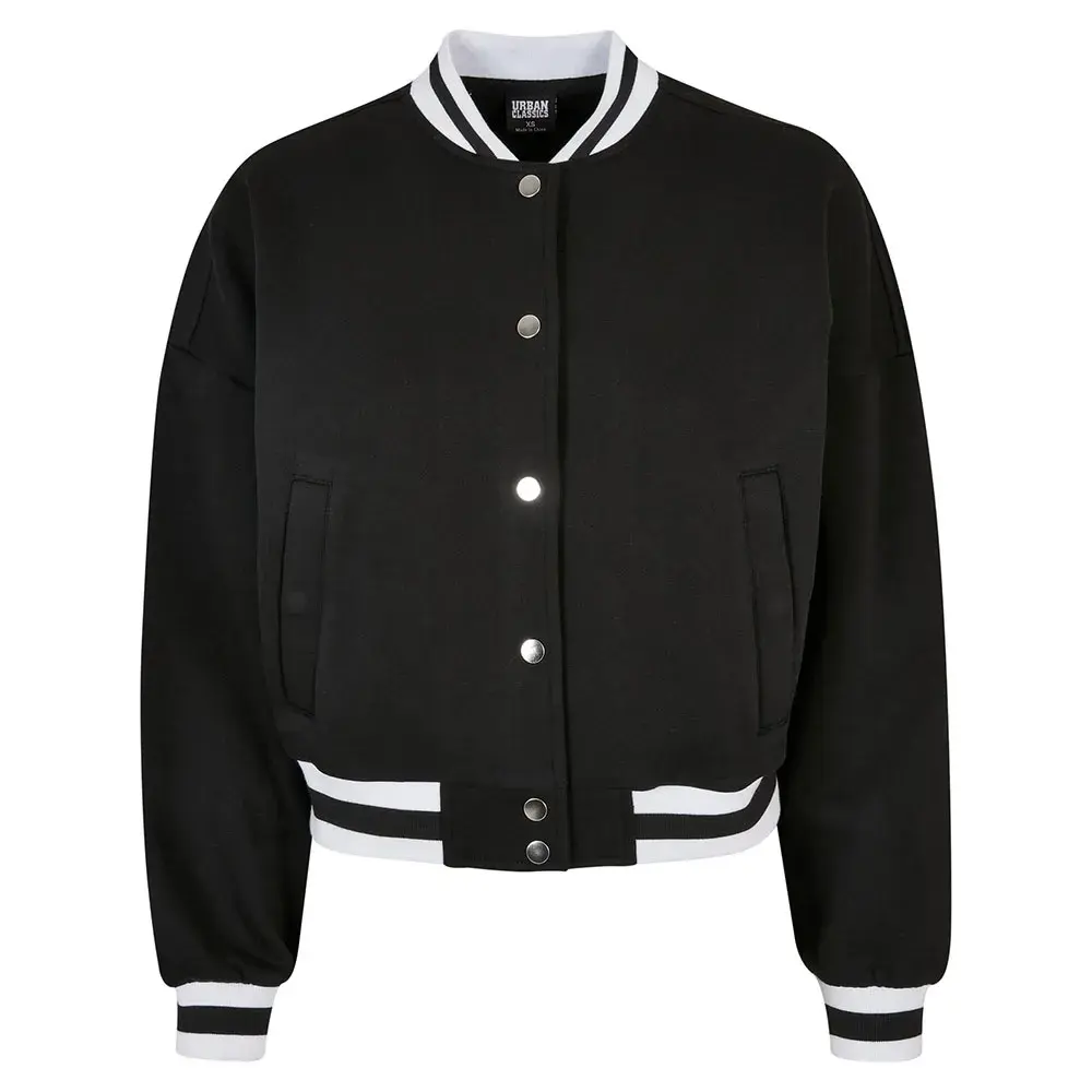 Женская куртка в стиле колледжа имеет короткий свободный крой и полностью раскрывает свой стильный потенциал. Воротник, манжеты и подол выполнены в полоску и резинку, что соответствует типу фигуры. Женская куртка застегивается на кнопку, а боковые карманы идеально дополняют ее. Куртка изготовлена из мягкого трикотажного материала на основе хлопка и полиэстера.