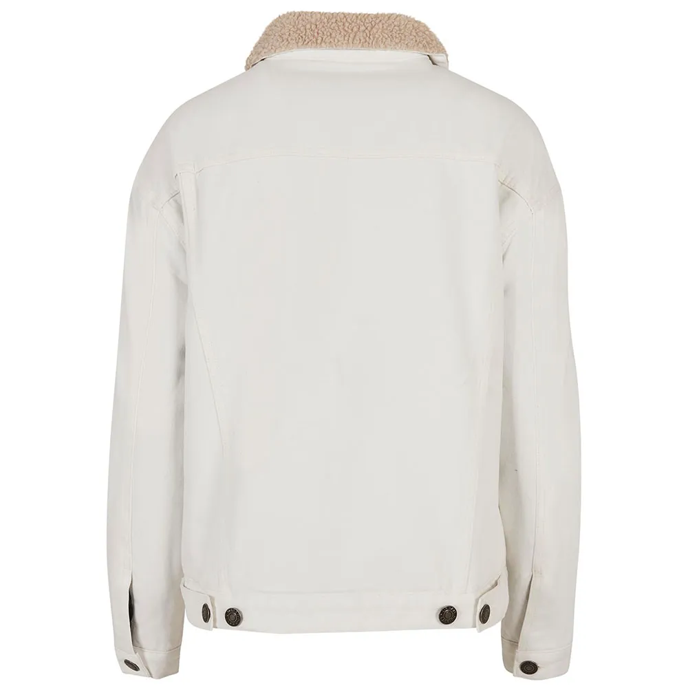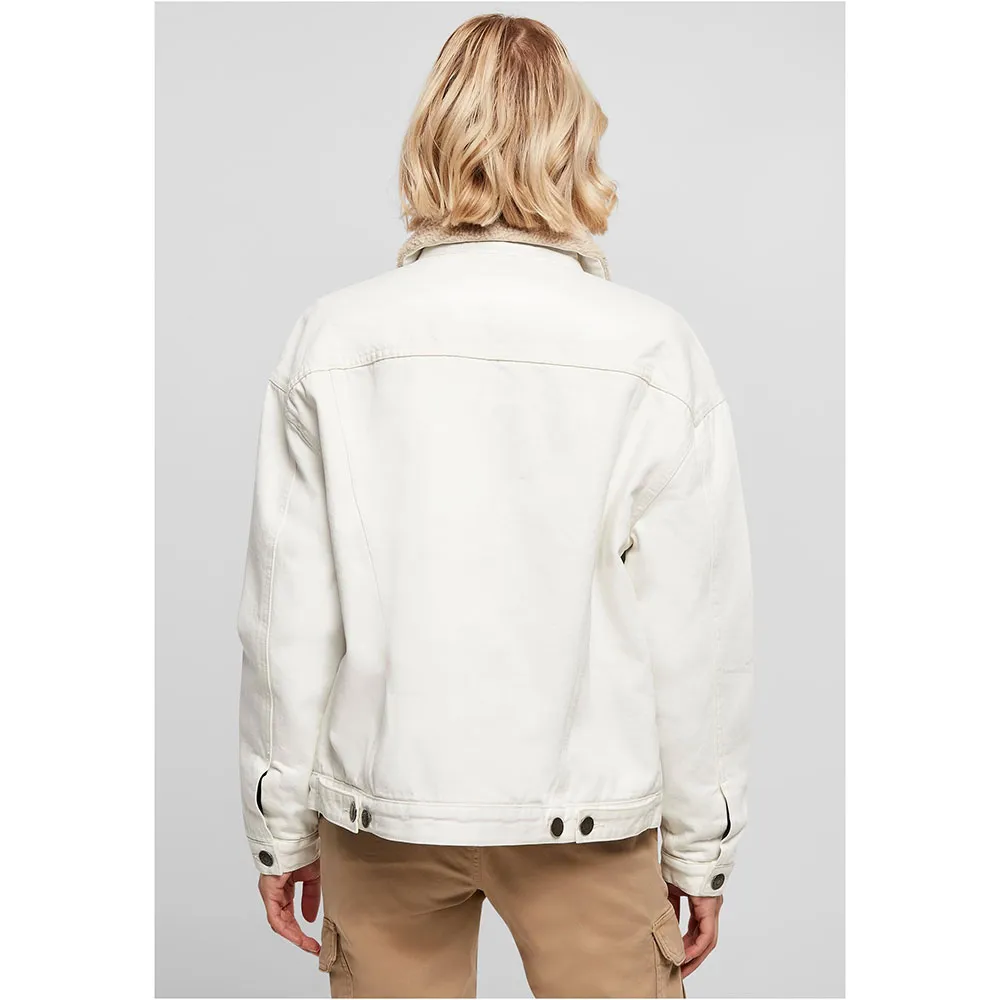 Женская джинсовая куртка отличается классическим стилем свободного кроя, воротником из шерпы и уютной подкладкой из шерпы. Типичные элементы джинсовой куртки – планка с пуговицами, нагрудные карманы с клапанами, боковые карманы, а также пуговицы и хлястики на подоле сзади – гармонично дополняют образ. Джинсовая куртка изготовлена из хлопка и полиэстера.