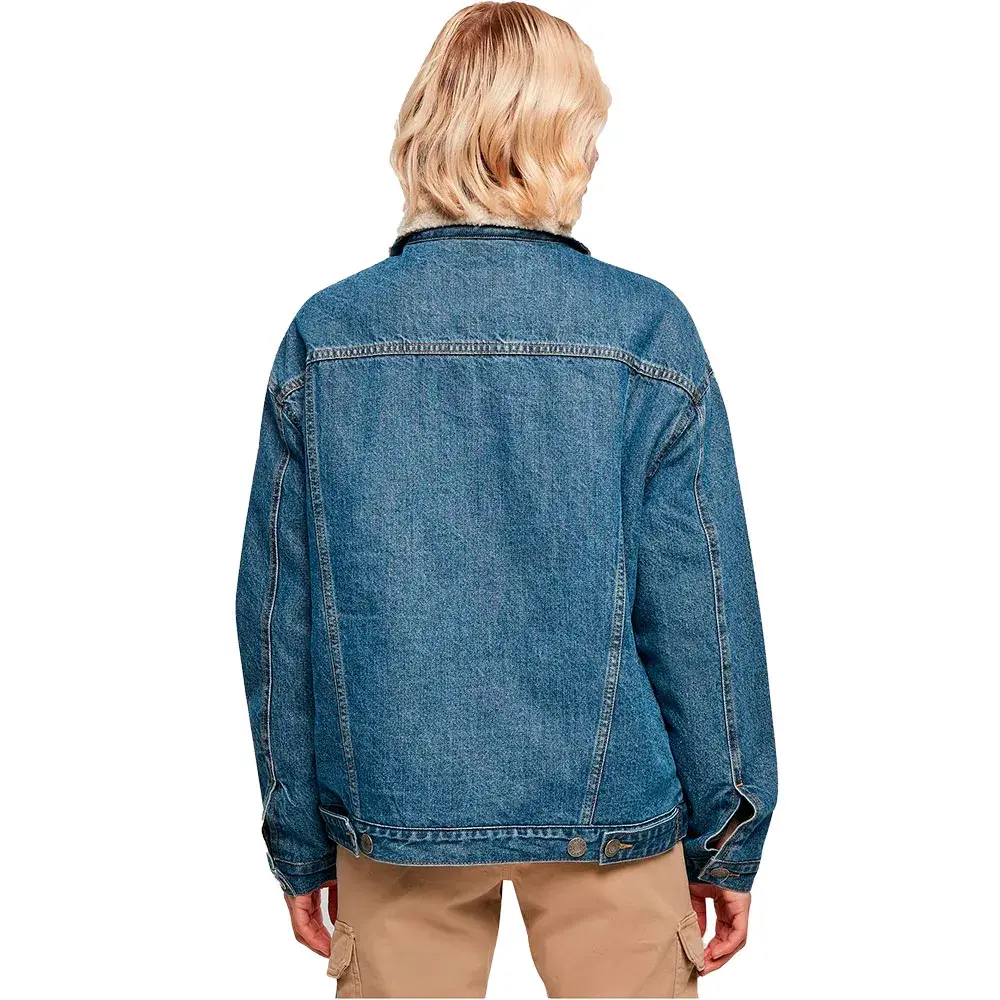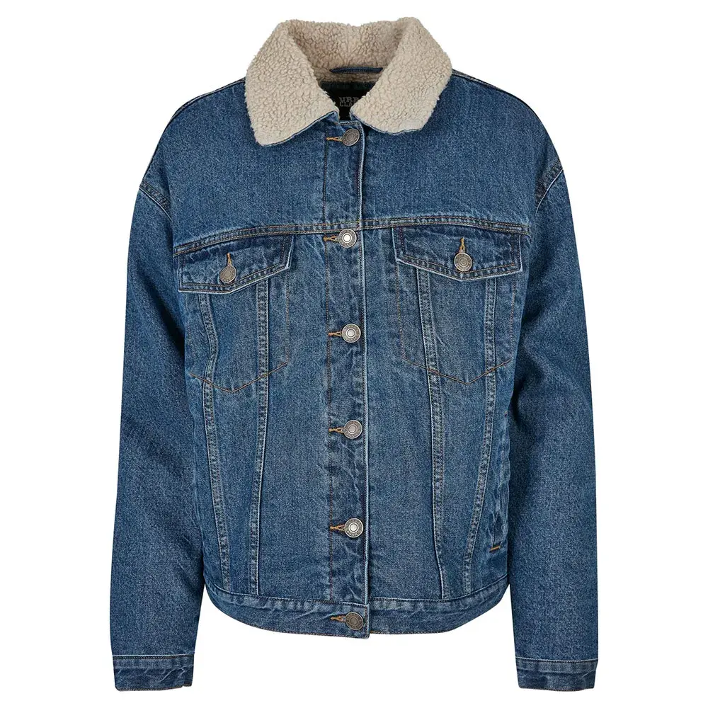 Женская джинсовая куртка отличается классическим стилем свободного кроя, воротником из шерпы и уютной подкладкой из шерпы. Типичные элементы джинсовой куртки – планка с пуговицами, нагрудные карманы с клапанами, боковые карманы, а также пуговицы и хлястики на подоле сзади – гармонично дополняют образ. Джинсовая куртка изготовлена из хлопка и полиэстера.