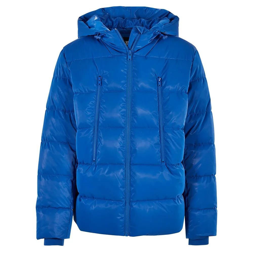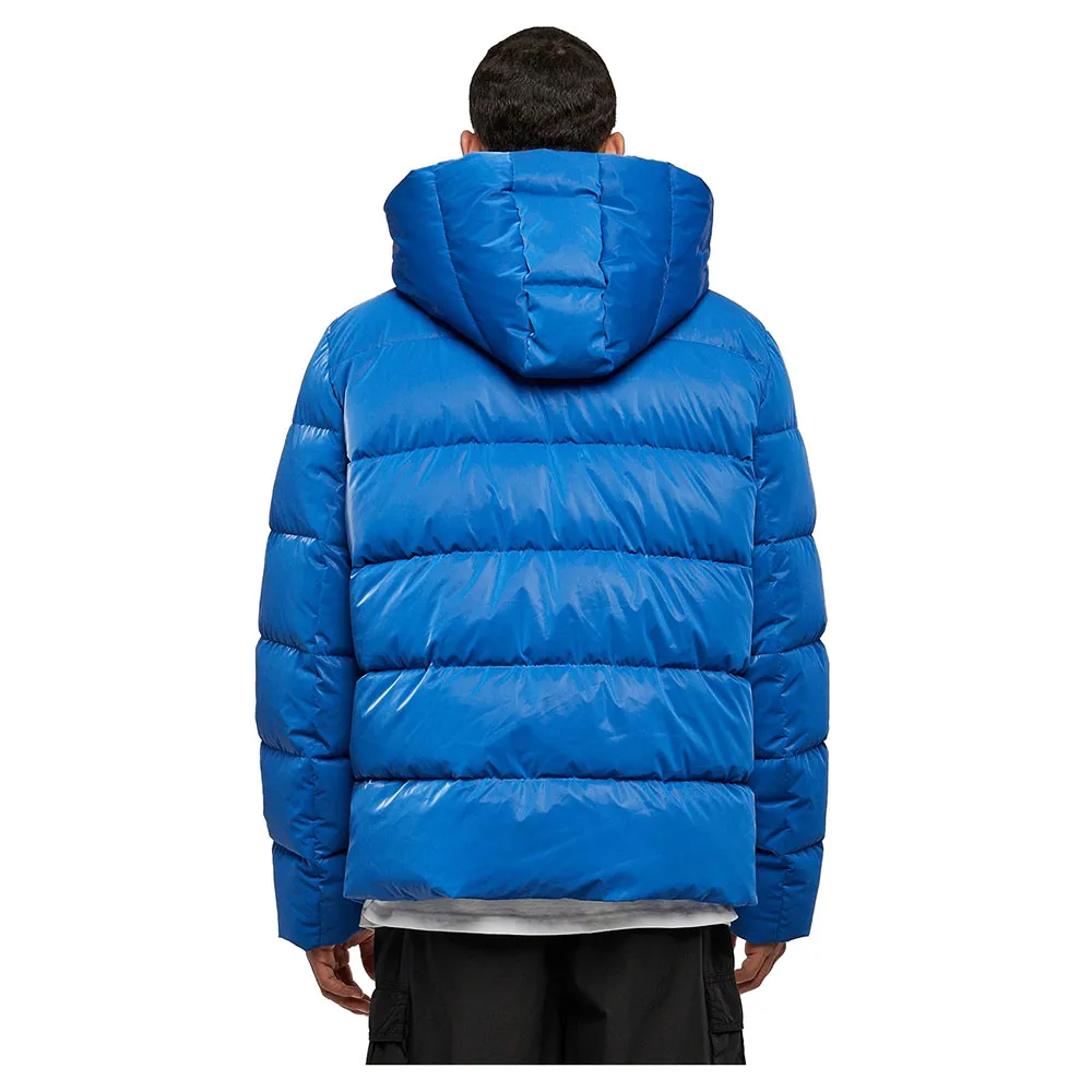 Мужская стеганая куртка стильного дизайна с толстой подкладкой, широкой крестообразной строчкой и мерцающим, особо прочным материалом, имитирующим кожу акулы, выполненным из полиуретана. Она имеет роскошную подкладку из тафты, боковые карманы на молнии и внутренний карман. Капюшон и подол куртки регулируются с помощью эластичной кулиски и фиксатора. Мужская стеганая куртка застегивается на молнию спереди. Ребристые манжеты гармонично дополняют образ. Утепленная мужская куртка имеет удобный классический крой.