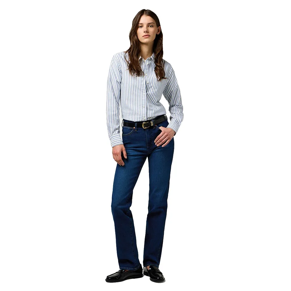 Наши женские прямые джинсы, получившие меткое название, поднимают планку благодаря облегающему силуэту, прямому крою по ноге и бедру и мягкому на ощупь хлопку с едва заметной долей эластичности для комфорта и удобства в носке в течение всего дня.
