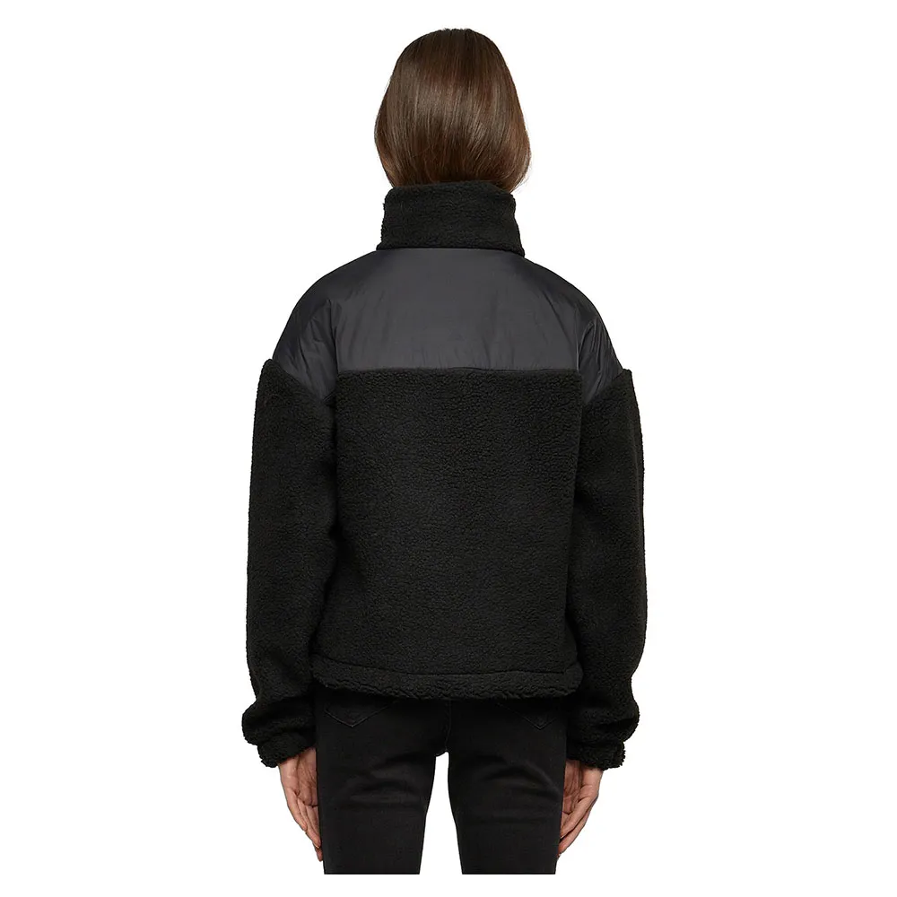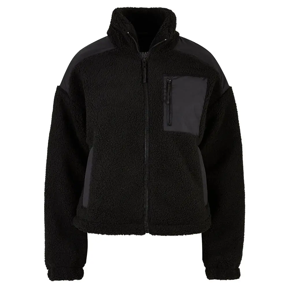 Легкая женская куртка из пушистой шерпы расставляет акценты благодаря гладким нейлоновым вставкам – в области плеч и в виде нагрудного кармана. Высокий воротник-стойка застегивается на молнию. Боковые карманы – еще одна практичная деталь. Нагрудный карман застегивается на вертикальную молнию. Куртка из шерпы имеет свободный крой со слегка спущенной линией плеча. Форма регулируется с помощью эластичной кулиски с фиксатором в подгибе. Эластичные манжеты обеспечивают поддержку. Женская куртка на сетчатой подкладке.