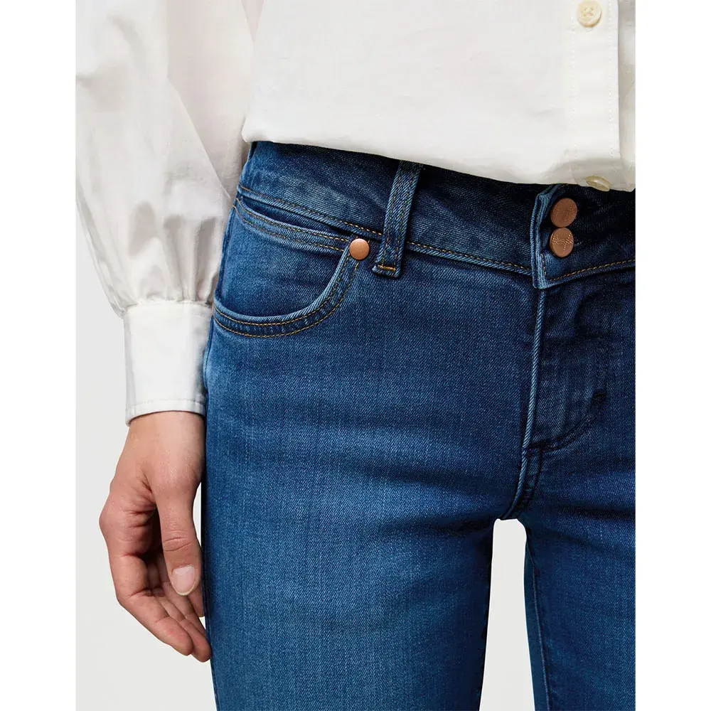 Двойная застежка на пуговицы в винтажном стиле добавляет дополнительную дозу аутентичности, а средне-синий оттенок делает их вневременными и удобными для ношения.