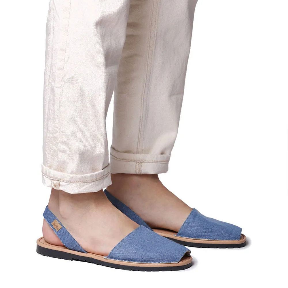 Эти мужские сандалии изготовлены из джинсовой ткани однотонных тонов.