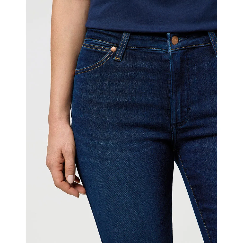 Узкие от бедра до колена и узкие от колена вниз со средней посадкой на талии и прилегающим седлом.