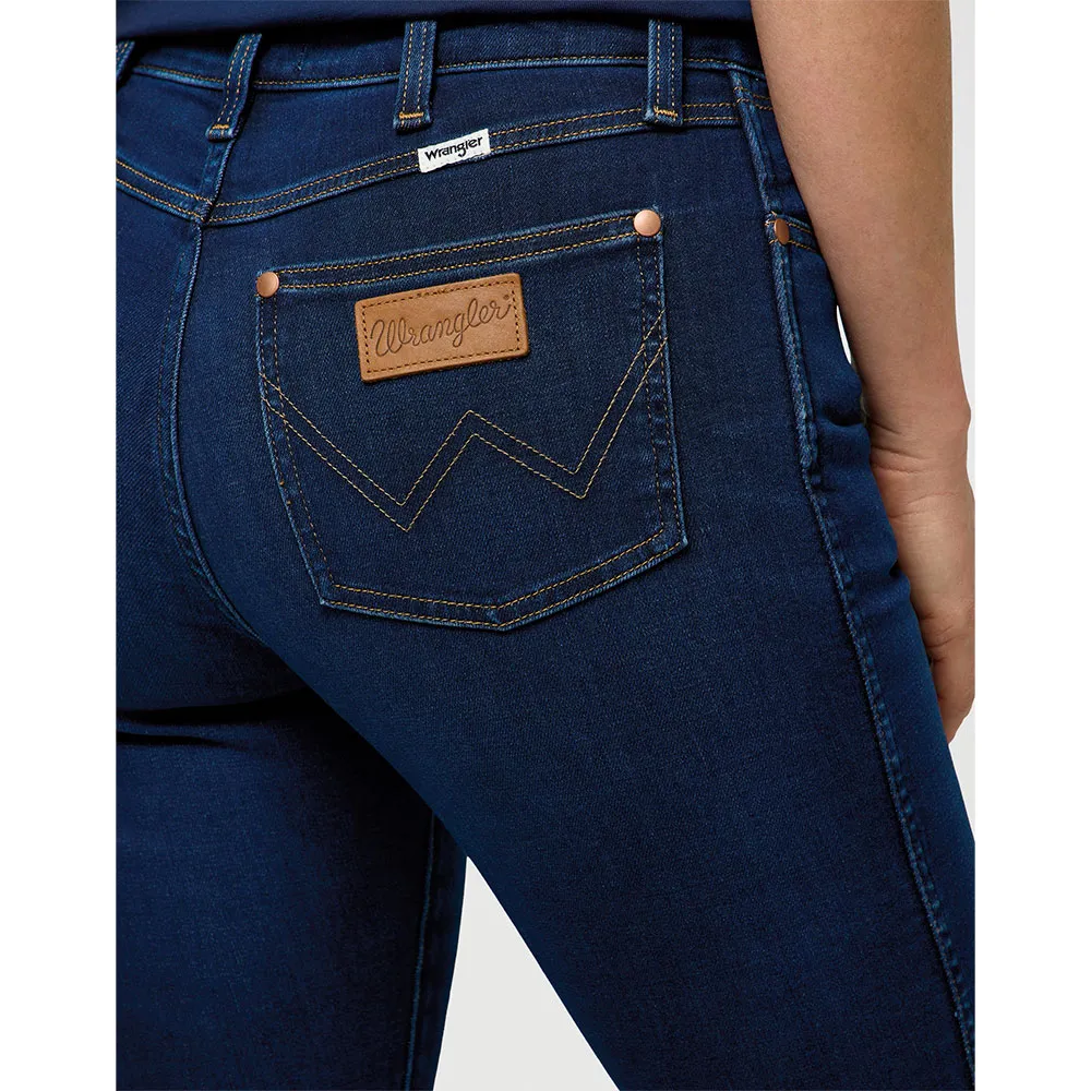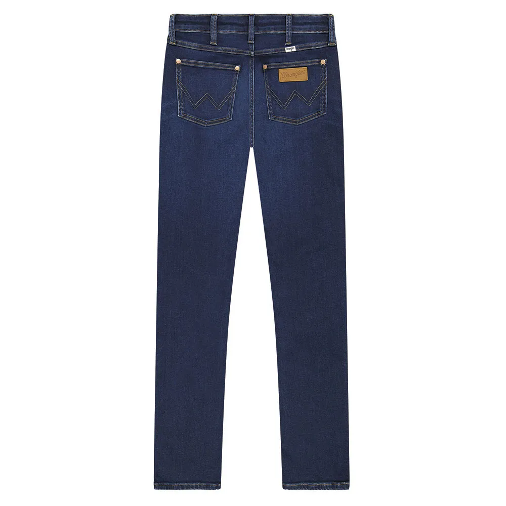Отличительные особенности включают 7 шлевок для ремня, застежку-молнию на пуговицы, W-образную строчку и нашу светло-коньячную кожаную нашивку на Задний карман.